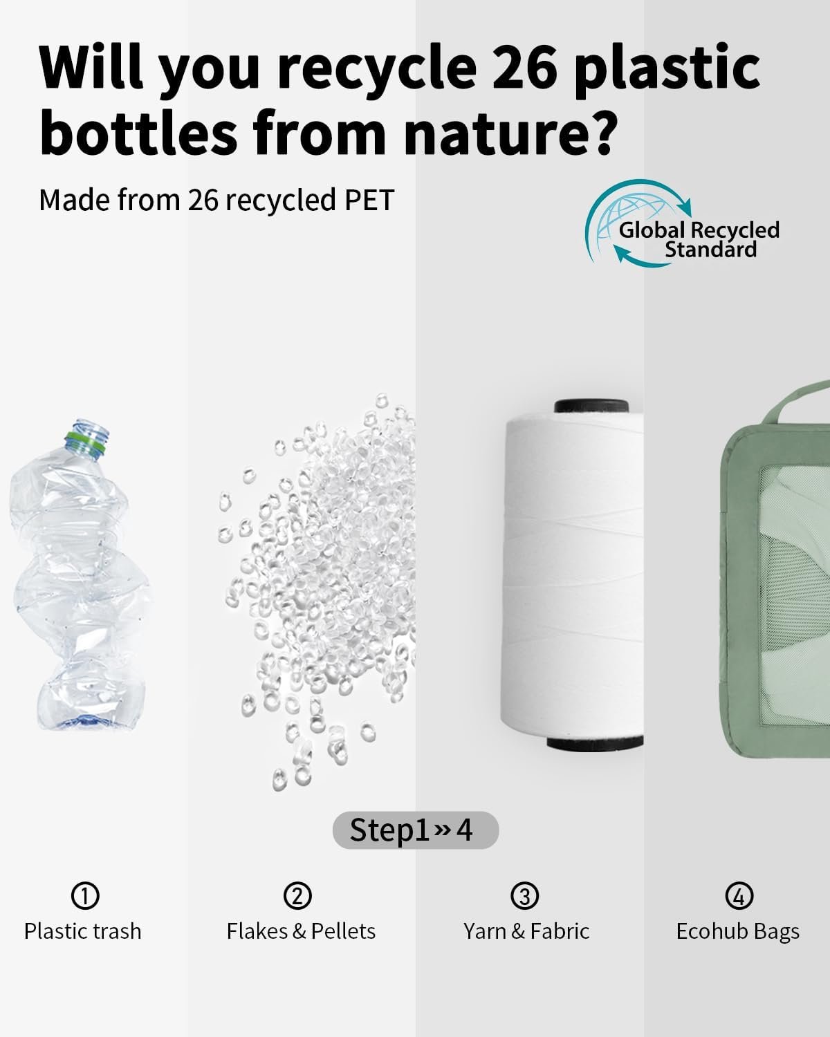 【SUSTAINABLE AND GUARANTEE】: ECOHUB travel packing cubes are made from at least 50% recycled materials, with fabric and lining crafted from 26 recycled PET plastic bottles. The lightweight fabric combined with YKK zippers and reinforced ripstop stitching, ensure durability for any adventure. If you have any concerns, reach out through your order. (Patent Pending)