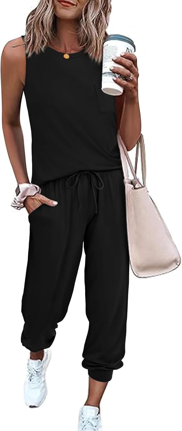 Ekouaer Women’s Pajamas Set Sleeveless Tank Tops with Jogger Set