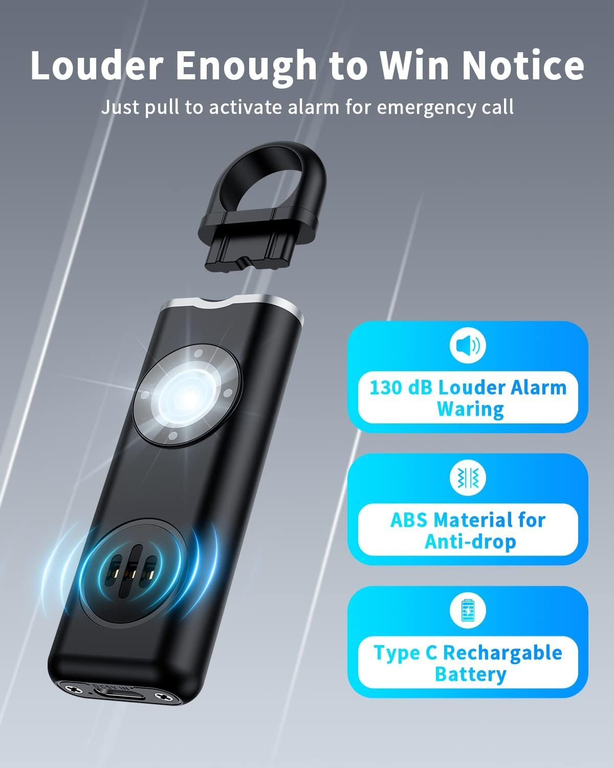 Loud Enough to Bring Attention:Combined ear-piercing sound up to 130 DB with blinding LED strobe light for scaring off attacker, this personal alarm for women gives you confidence and courage to move around at night when walking to your car, jogging, or when going out at night alone