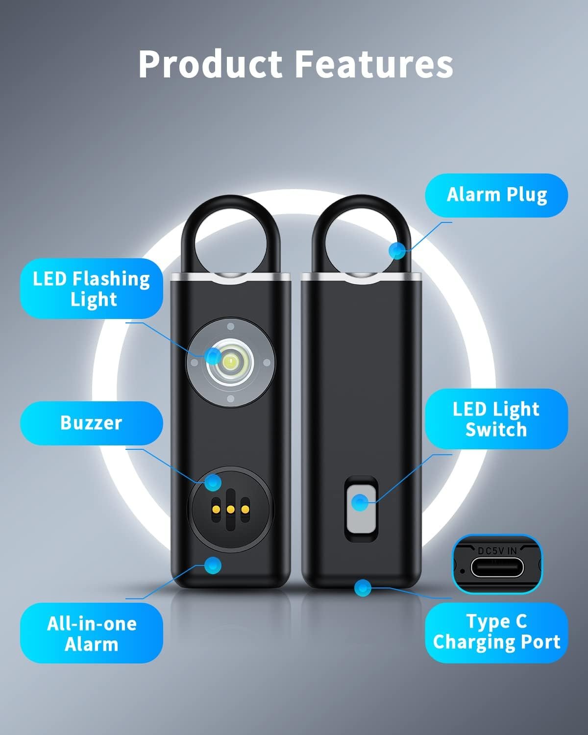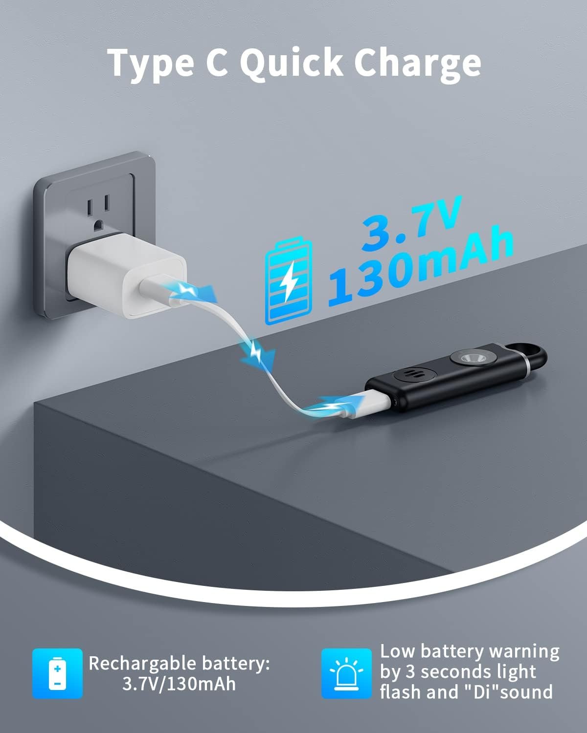 Convenience Comes Firstly:Comes with light weight, rechargeable battery, easy operation, and carabiner to attach in keychain, this safety alarm key-chain makes it a must have useful personal safety alarm for women.
