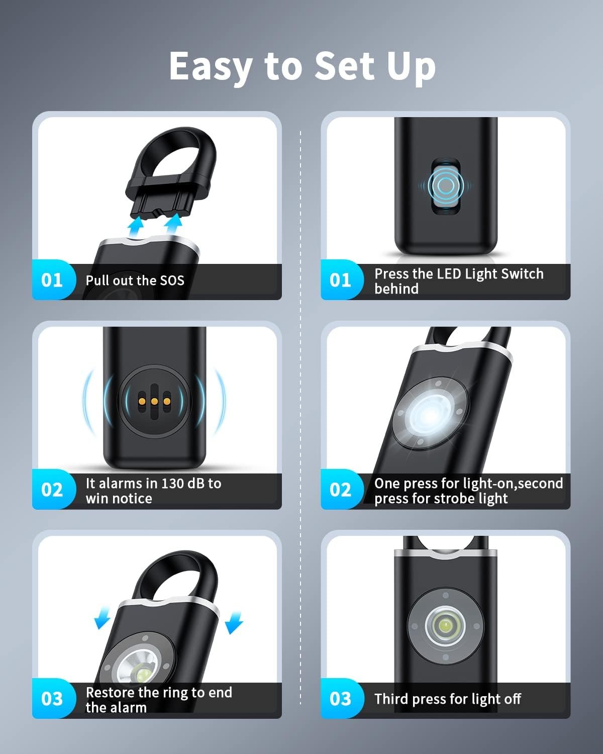 Quality Assurance: Target for highest quality standards, each unit of our personal alarms are checked multi-times for high quality. Any product-related problems, just feel free to contact us via email.We are here to offer service for you. Safety stands highest in our lives!