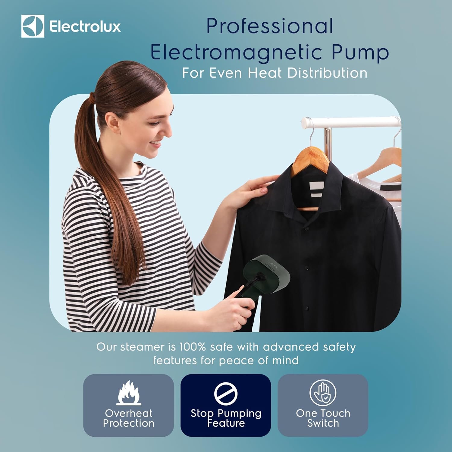 Powerful Fabric Steamer For Wrinkle-Free Clothes: The Electrolux iron-plate aluminium fabric steamer combines a 1200W design with an electromagnetic pump and ceramic coating for even heat distribution. The result? Wrinkle-free clothes in no time.