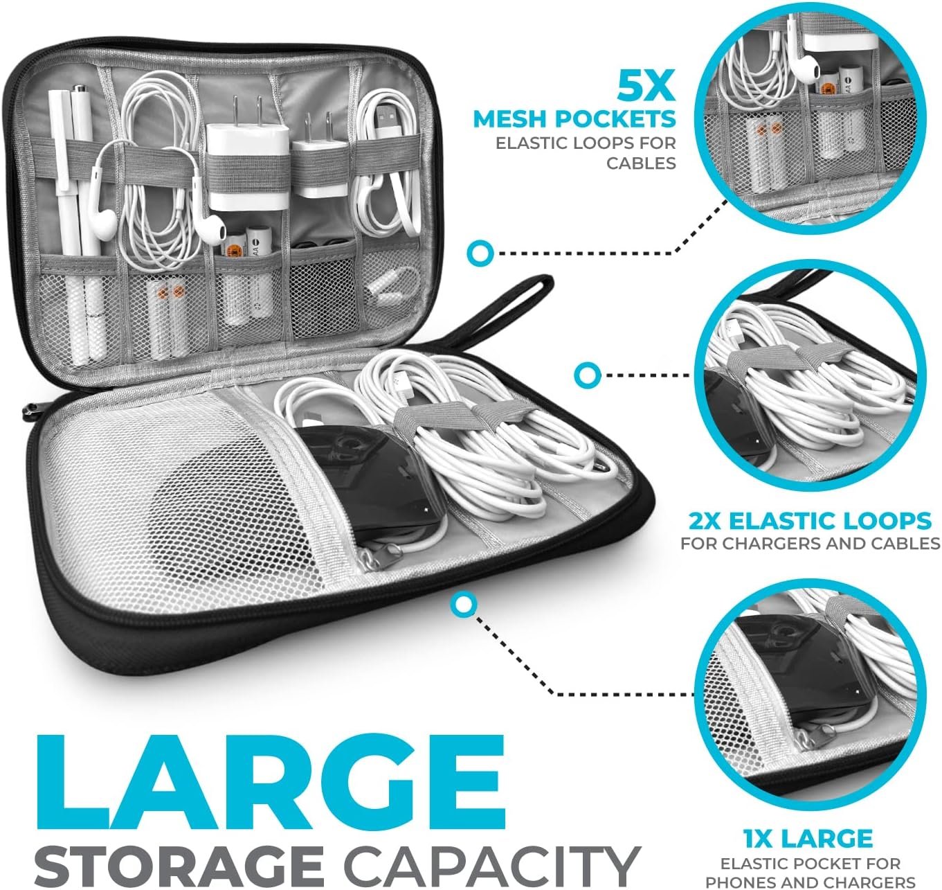 Electronics Charger Organizer – Travel Cable Case for Cords, Chargers, and Tech Accessories