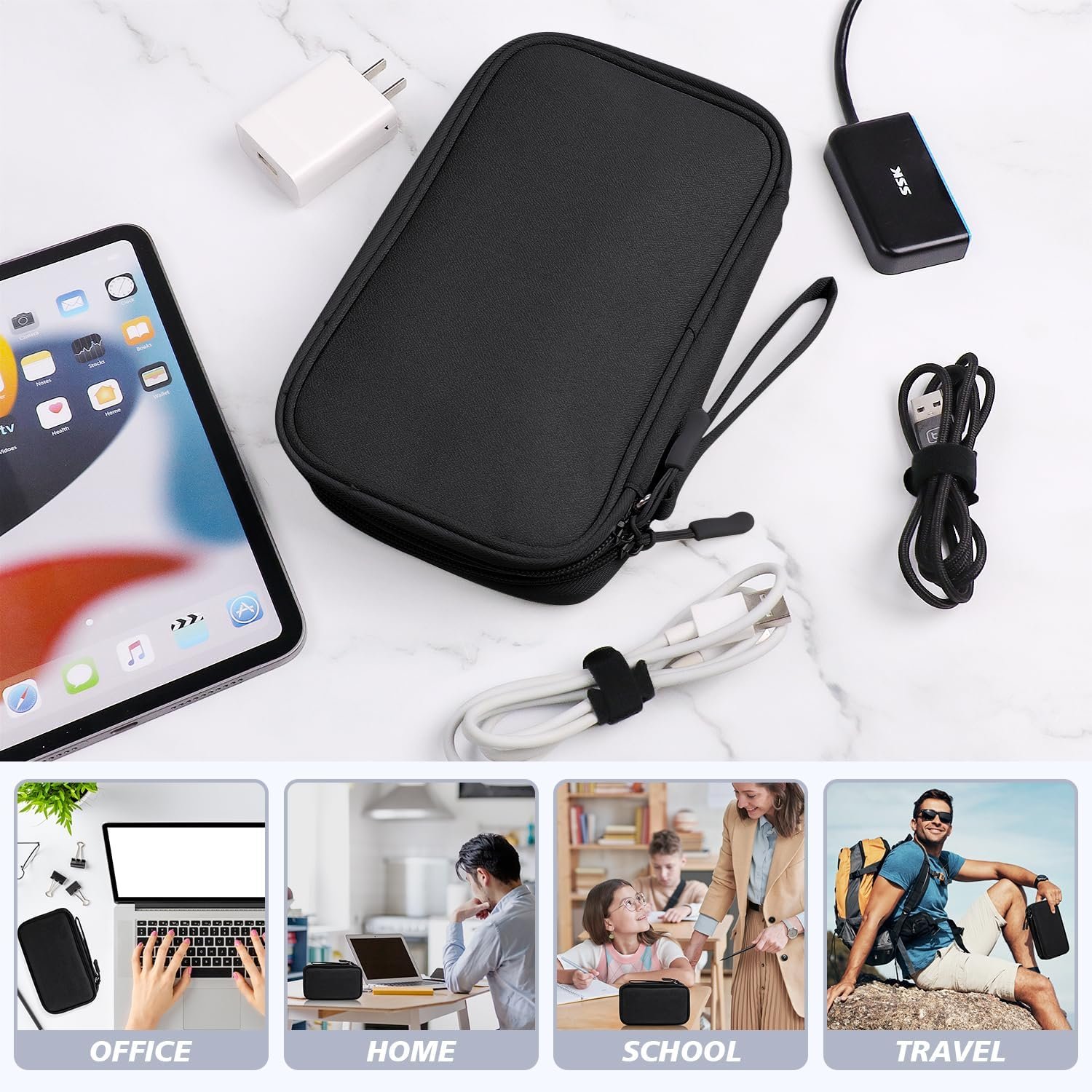 Electronics Organizer Travel Case, Travel Accessories Essentials for Men Women, Cord Organizer Travel Tech Pouch, Waterproof Double Layers Storage Bag for Cable, Charger, Phone, Earphone, Black