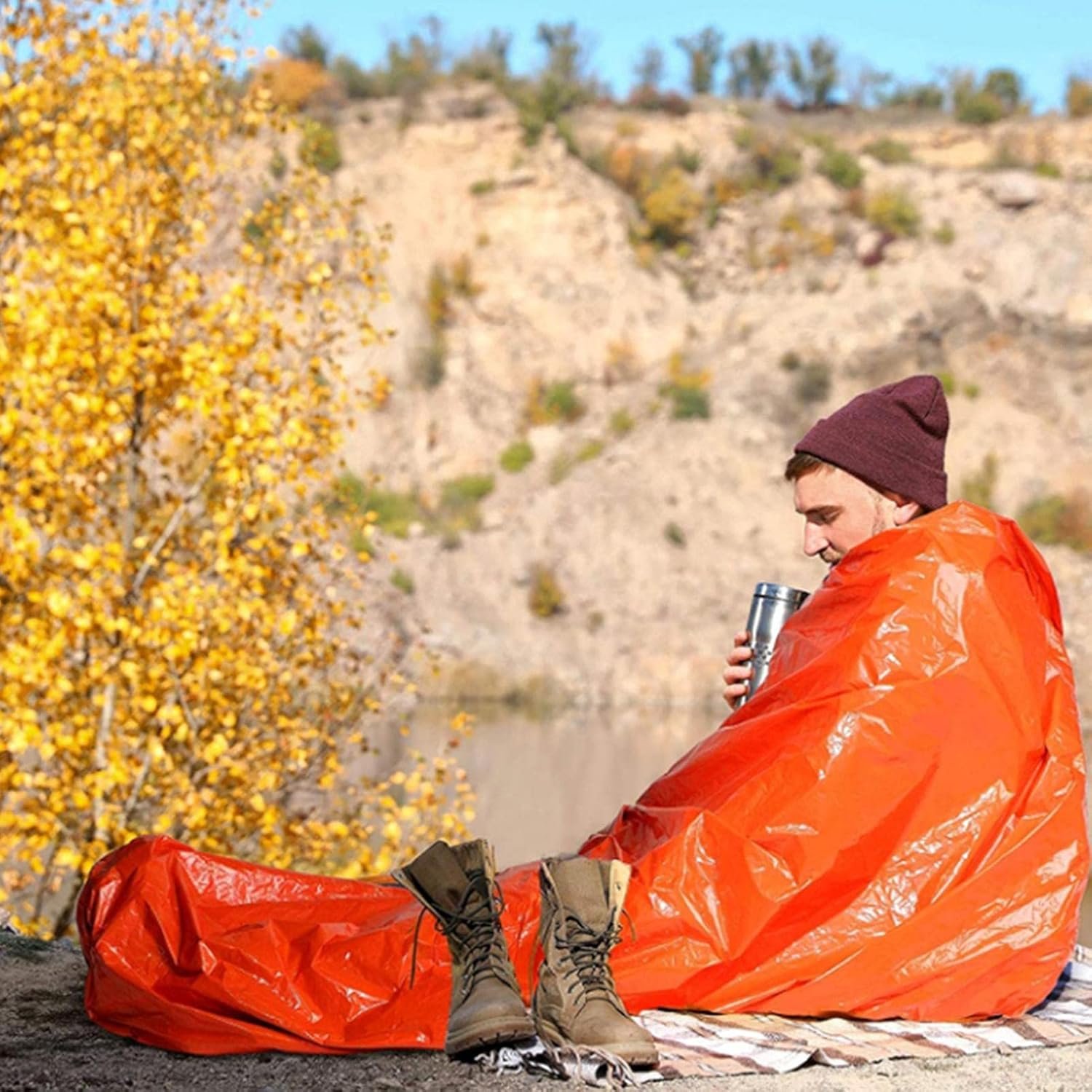 Emergency Sleeping Bag, 83″x36″ Waterproof Mylar Emergency Blanket for Survival Gear and Supplies, Lightweight Survival Sleeping Bag for Camping, Hiking, Outdoor, Activities & Travel
