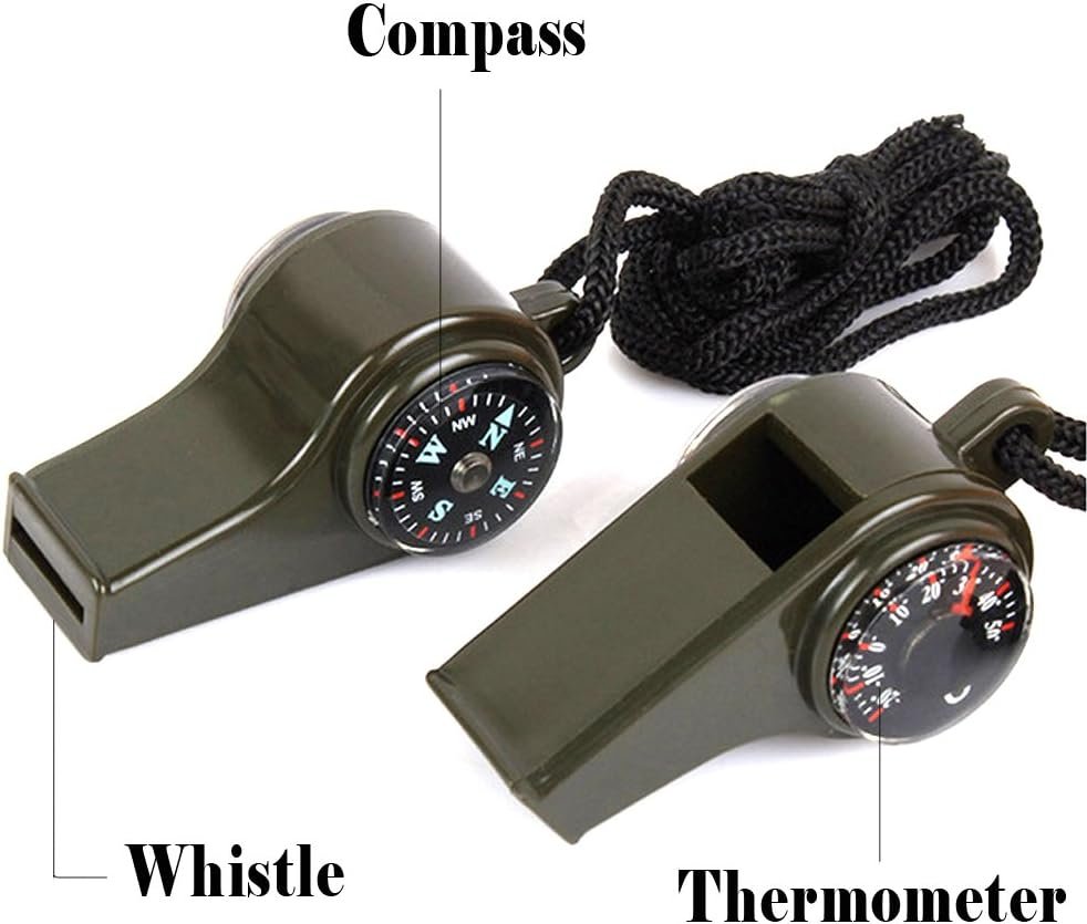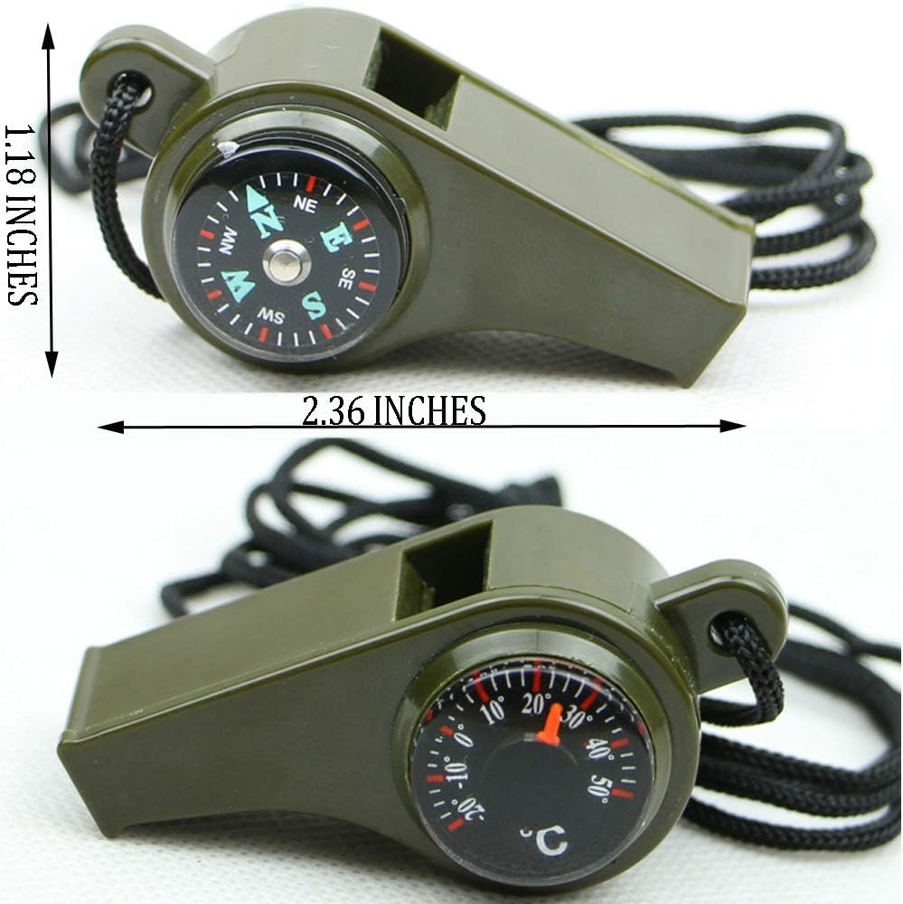 Emergency Whistle with Lanyard, Multi-Functional 3 in1 Survival Gear Compass Thermometer for Outdoor Camping Hiking