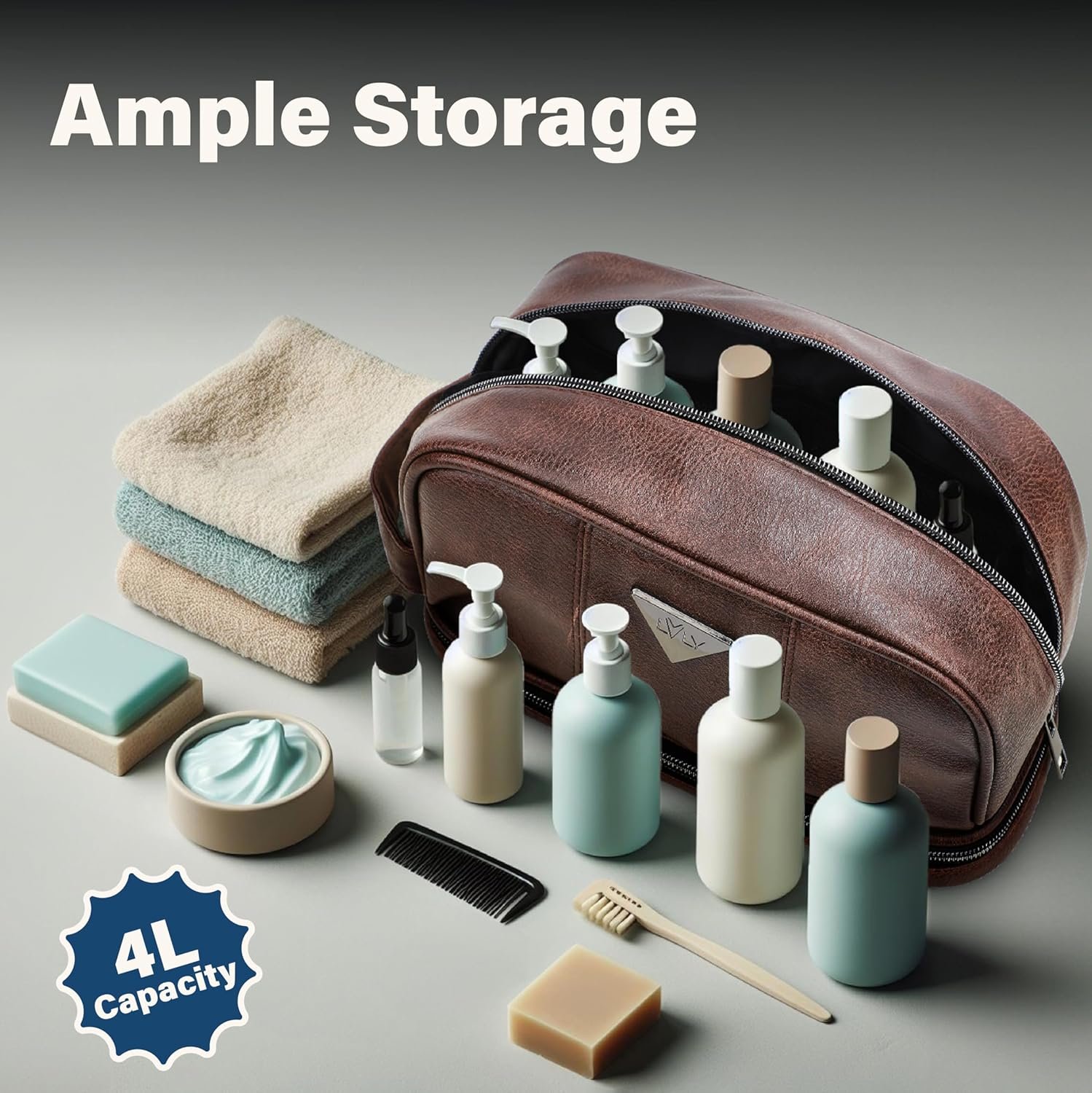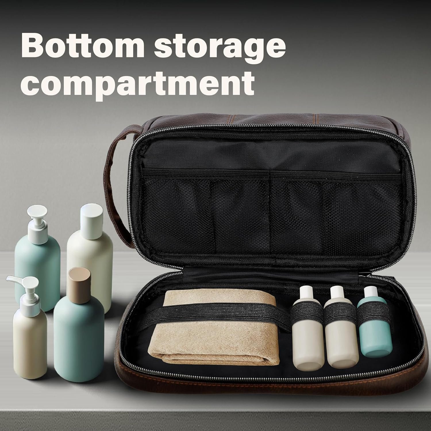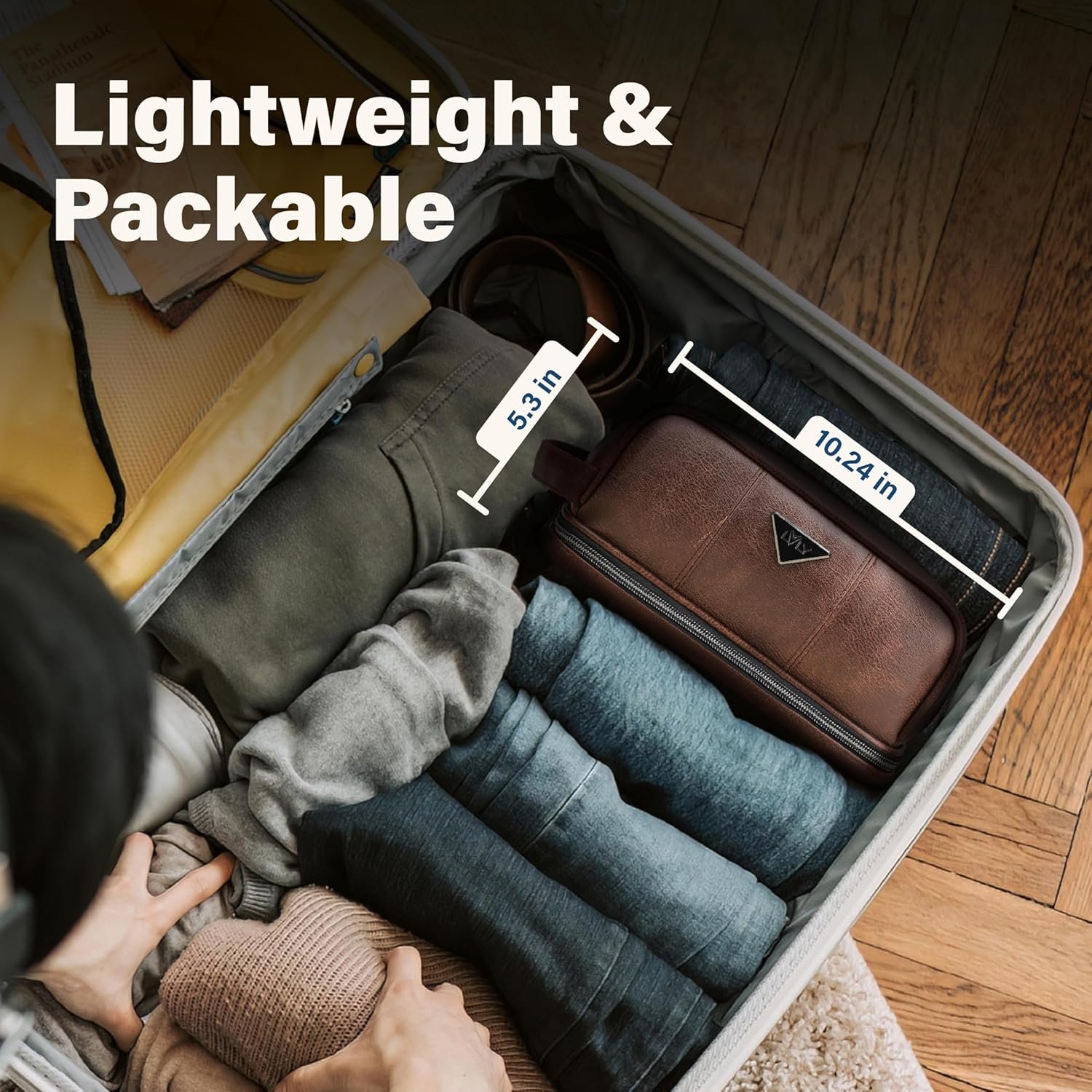 emissary Leather Travel Toiletry Bag for Men, Water Resistant Travel Toiletry Organizer Dopp Kit, Large Capacity Travel Kit for Men, Shaving Bag for Travel Accessories – Brown