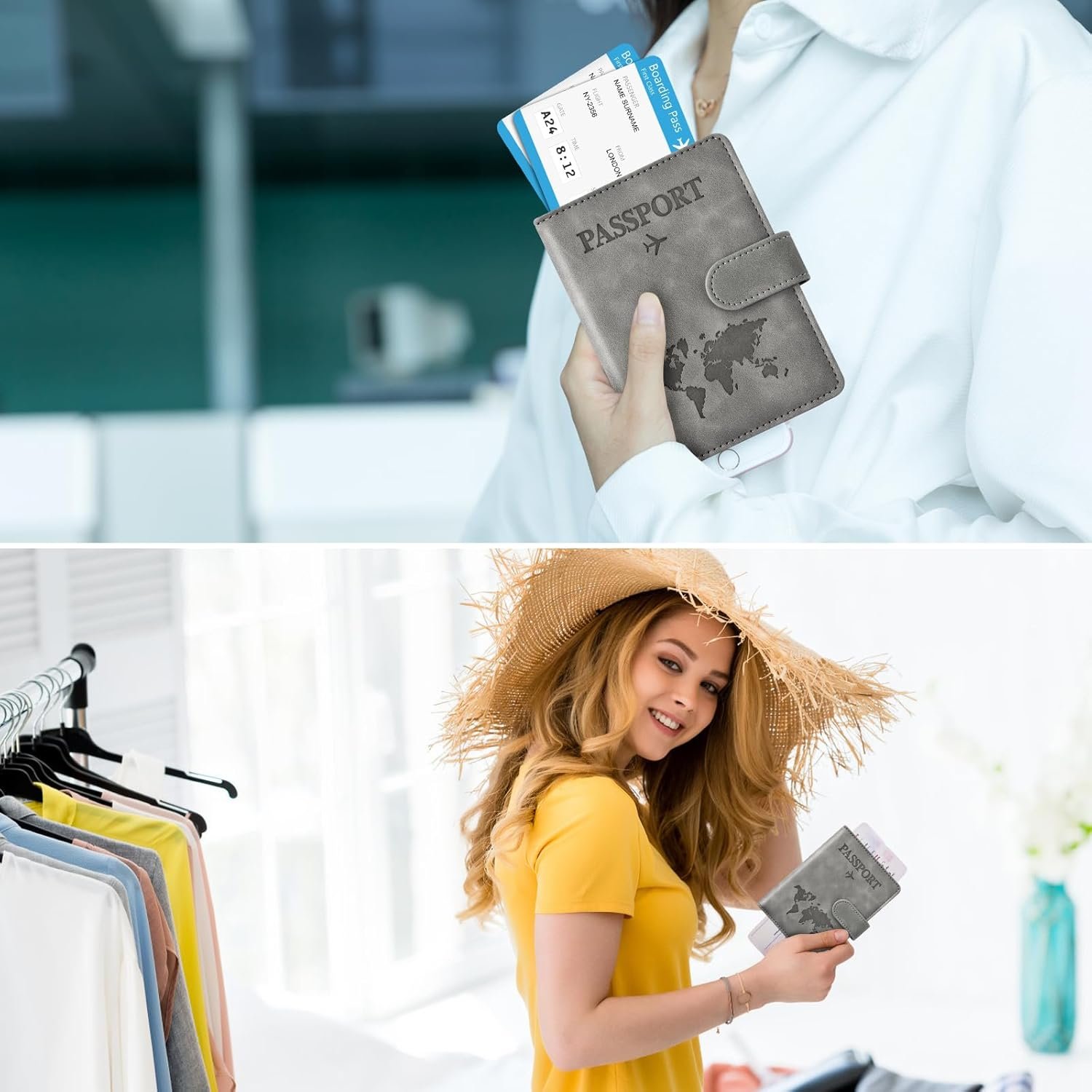 Eoehro Passport Holder for Travel Essentials, Passport Wallet Cover Case for Travel Must Haves Accessories,Passport Book Holders for Women and Men(gray)