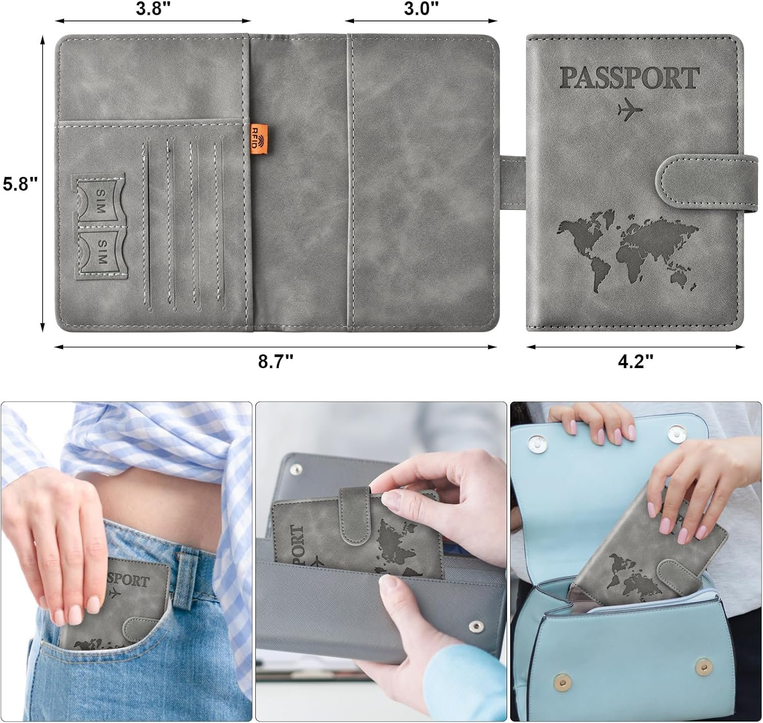 Easy Access and Magnetic Button: Our passport wallet features a convenient magnetic button closure, making it easy to access your passport and documents quickly while keeping them secure. Say goodbye to fumbling with zippers and buttons, our passport holder is designed for ease and efficiency