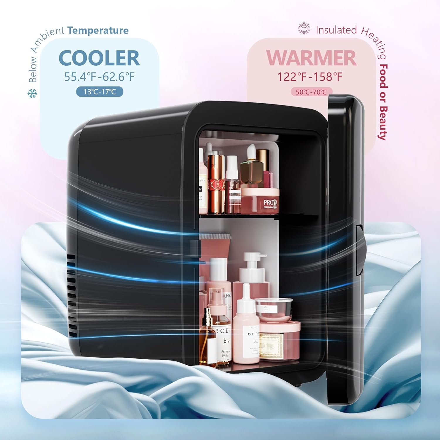 Eco-Friendly & Quiet Operation: This portable mini fridge uses advanced semiconductor technology that’s free from freon and harmful refrigerants, making it both safe and environmentally friendly. Plus, it operates at as low as 25 dB, so you’ll hardly notice it’s there while using your skincare fridge