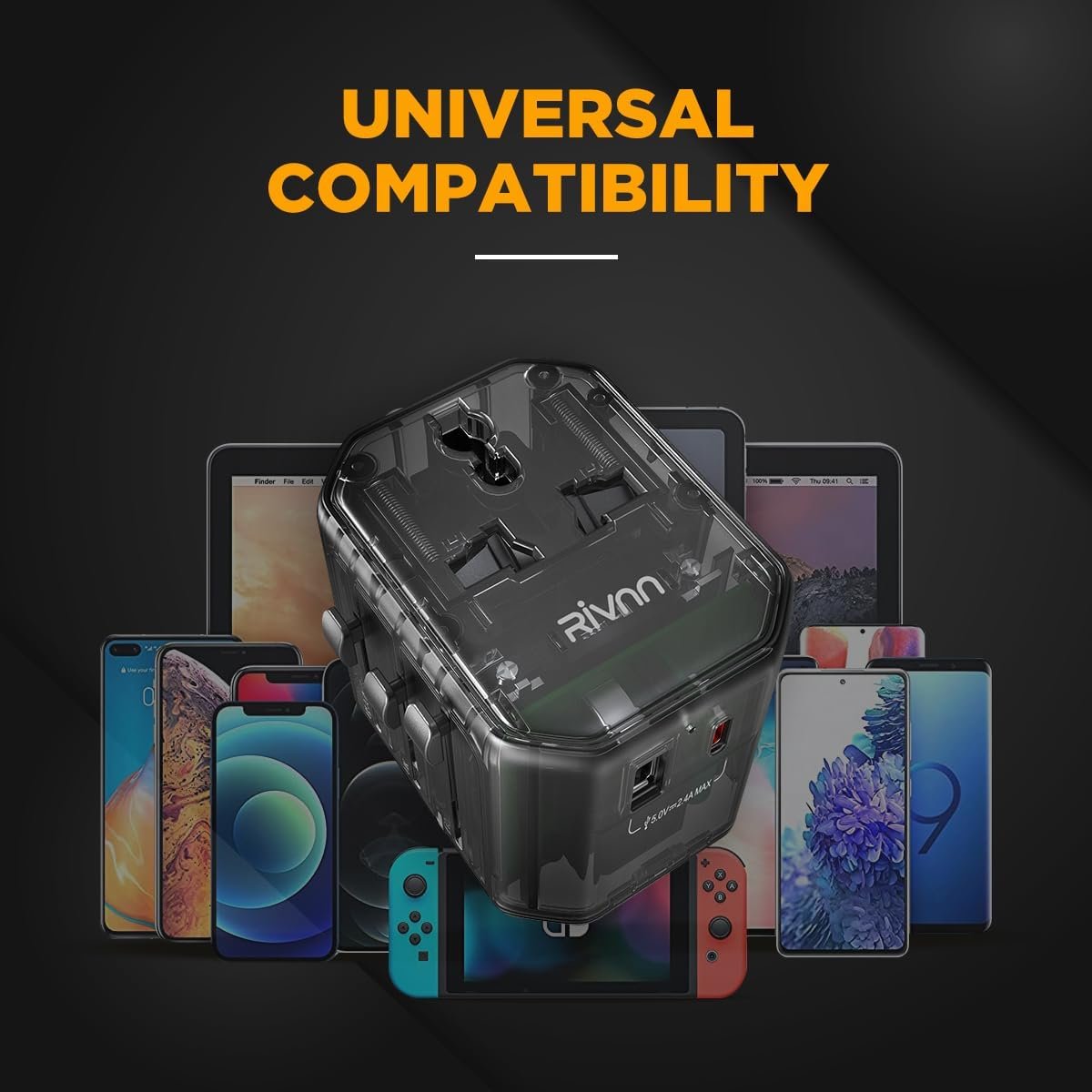 ★Rivnn 【3 IN 1 TRAVEL ADAPTER 】Charge up to 3 devices simultaneously at high speed with 1 USB-A ports (2.4A), 1 USB-C port (2.4A), and 1 AC socket. Ideal for charging iPhones, laptops, tablets, power banks, cameras, headsets, and more.