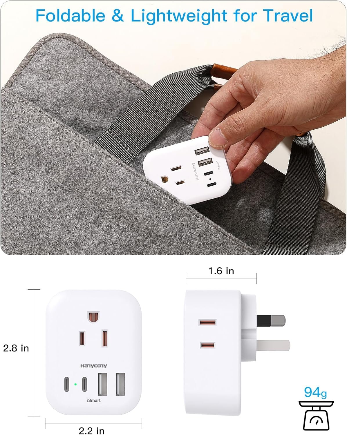 Measuring just 2.8× 2.2 × 1.7 inches, this adapter is easily fit in the corner of your suitcase, compact and lightweight design just taking up very little valuable space, is perfect for travel.