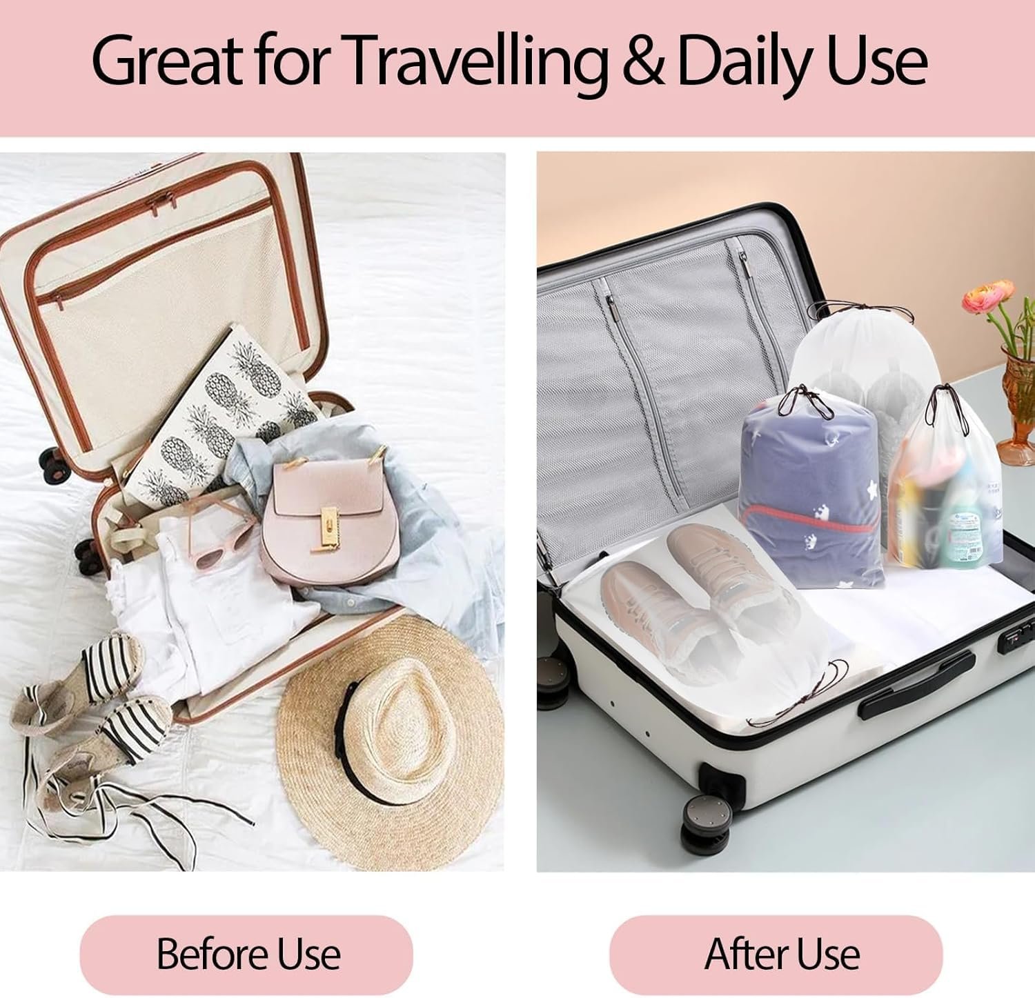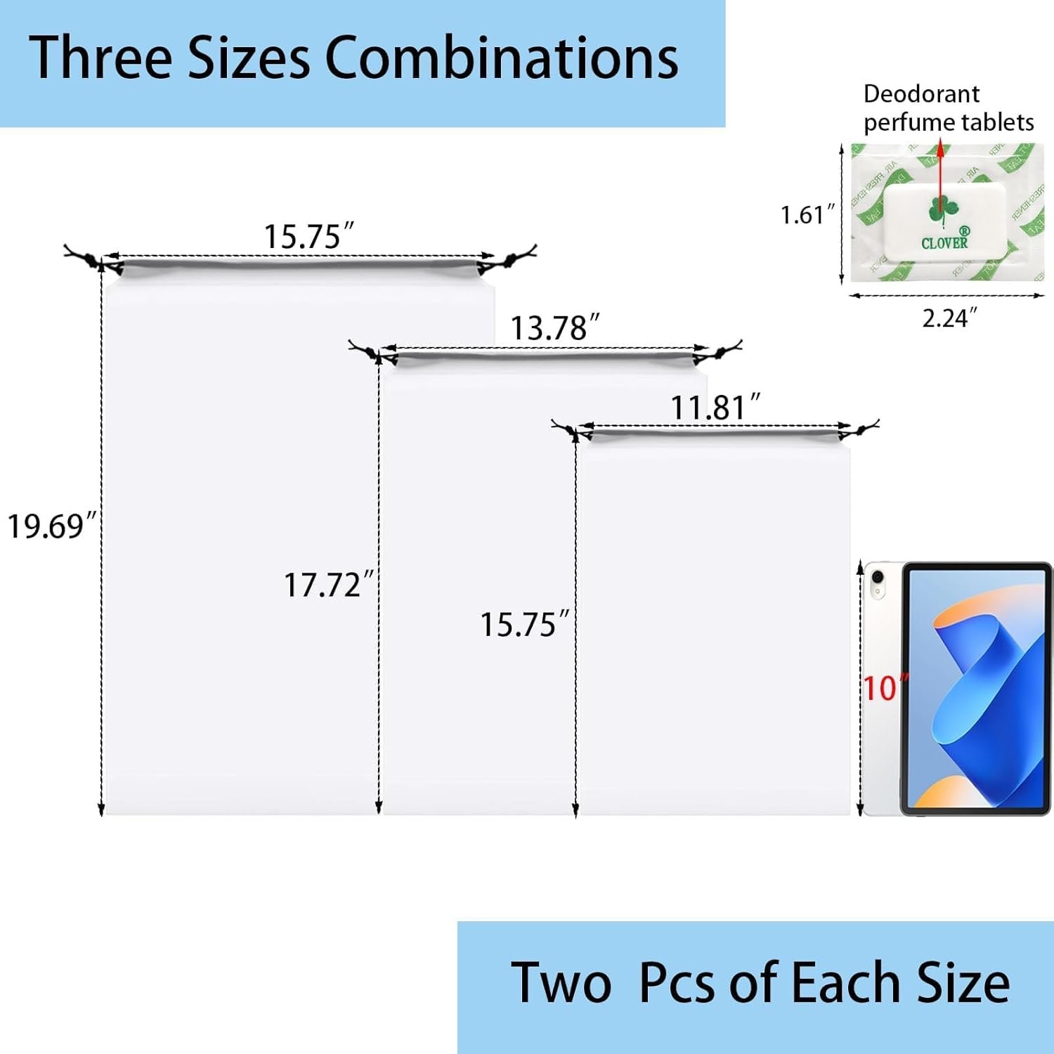 Convenient Travel Companion: Our set includes six translucent shoe bags, sized at 15.8 x 19.7 inches (40 x 50 cm)and 13.8 x 17.7 inches (35 x 45 cm)and 11.8 x 15.7 inches (30 x 40 cm) ,2 pcs of each size, designed specifically for your travel needs
