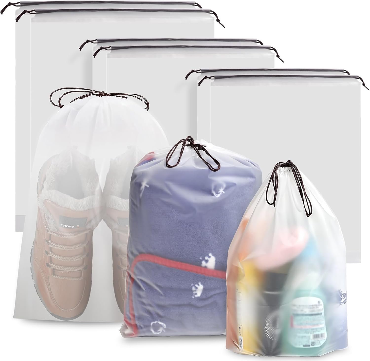 Extra Larg Clear Shoe Bags for Travel 6 PCS, 2 Pcs 15.8″ x 19.7″ & 2 Pcs 13.8″ x 17.7″ & 2 Pcs 11.8″ x 15.7″ Drawstring Travel Shoe Bags for Compression Packing, Road Trip Essentials Shoe Bag