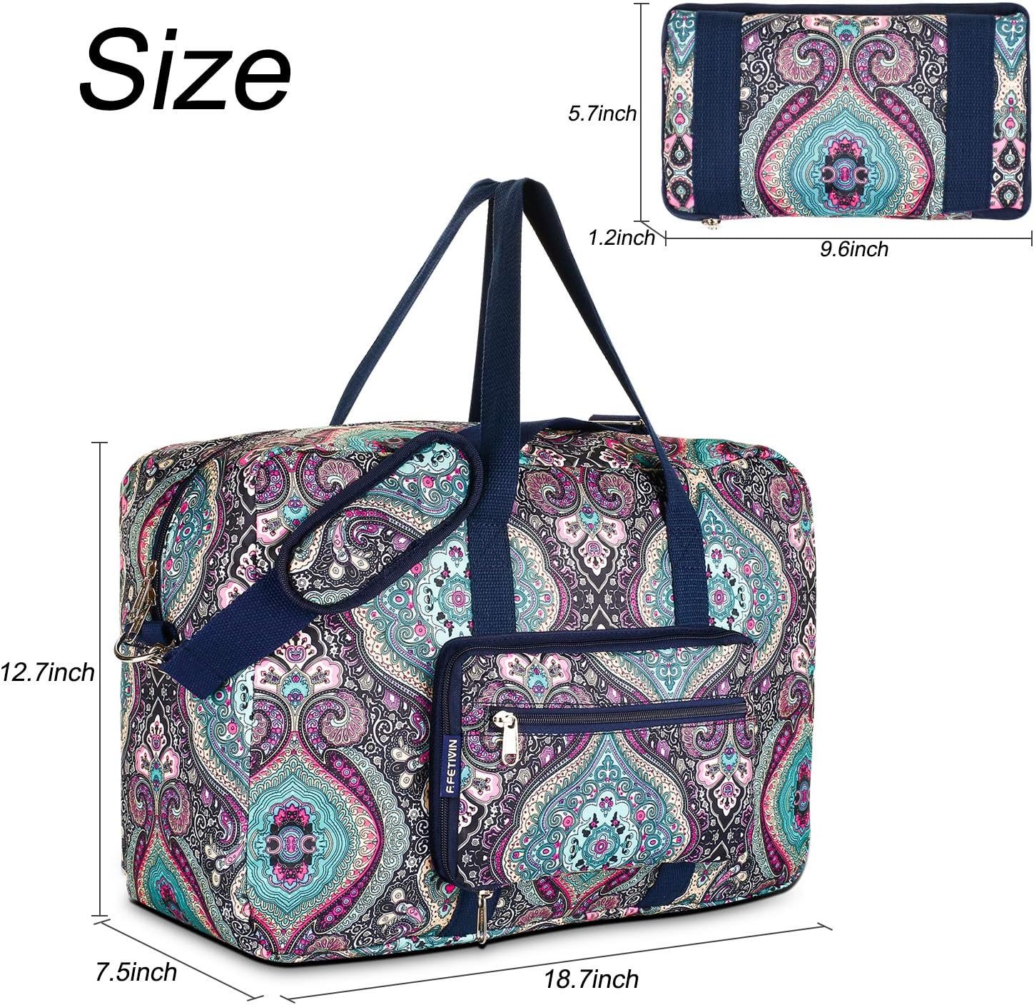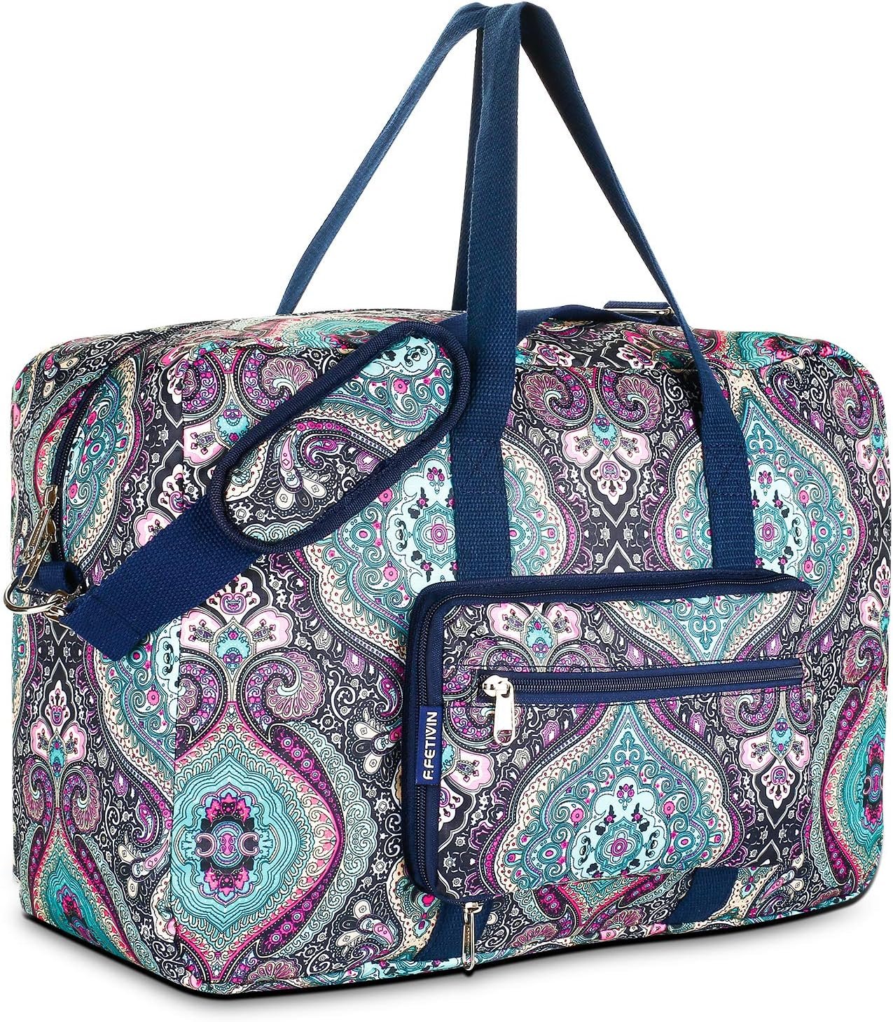F.FETIVIN FOLDABLE TRAVEL DUFFLE BAG FOR WOMEN FLORAL WEEKENDER OVERNIGHT CARRY ON BAG