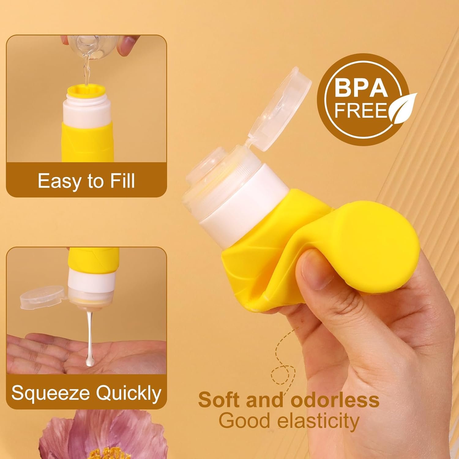 Food-Grade Silicone: Our travel toiletry bottles are made from food-grade silicone, ensuring durability and safety for storing liquids. These lightweight, waterproof silicone travel containers are odor-free and can be easily refilled for repeated use. The soft and squeezable design of the silicone travel bottles provides an unmatched experience while being environmentally friendly.