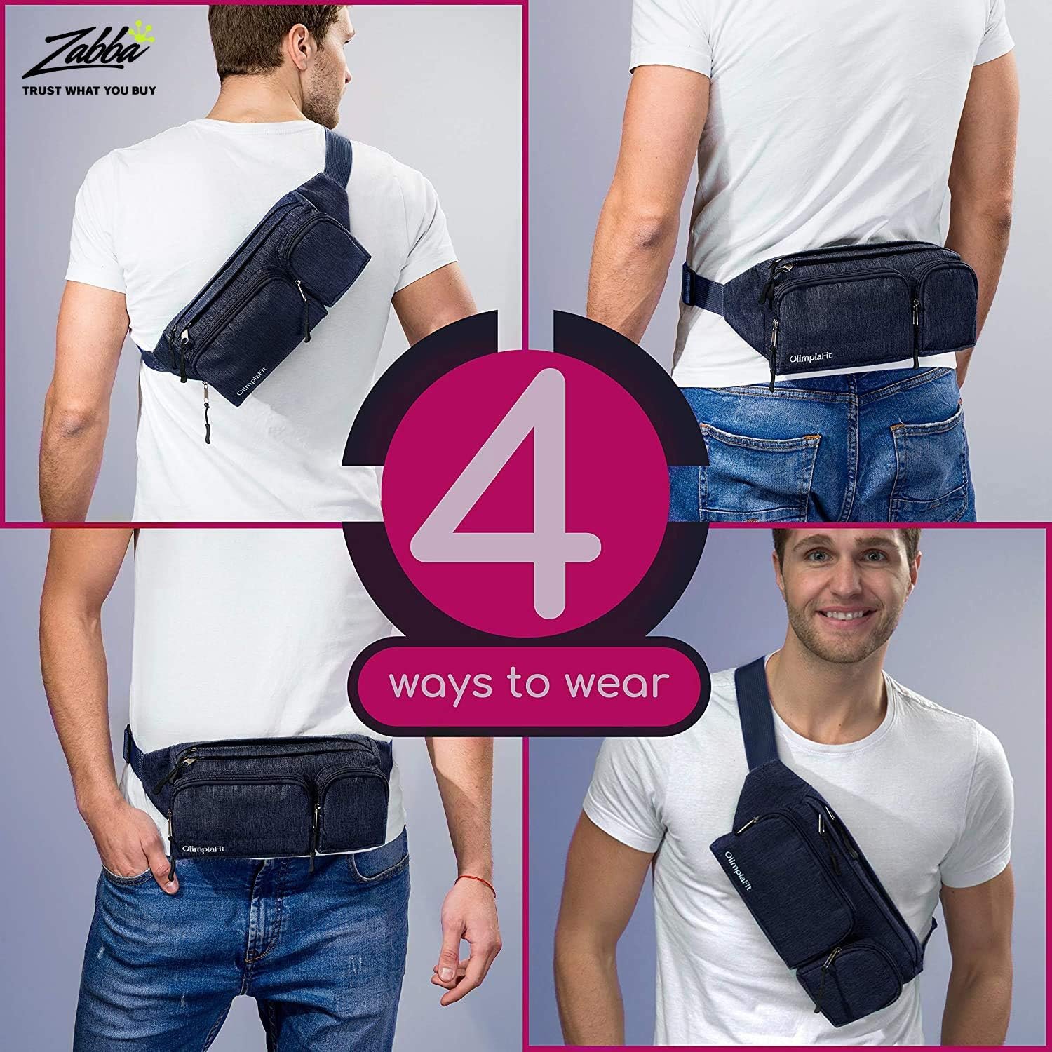 PERFECT ON THE GO ACCESSORY: Ultra-lightweight comfortable waist pack will keep your hands & pockets free! OlimpiaFit fanny bag fits everything you need inside & organized. Ideal anti-theft waist bag with hidden pockets. Keep your essentials at arms length and valuables safe when travelling, shopping, at theme parks, fairs, festivals, concerts. Great for running chores, dog walking, camping and all workouts (cycling, jogging, hiking). Simple fashionable design looks stylish with any outfit.