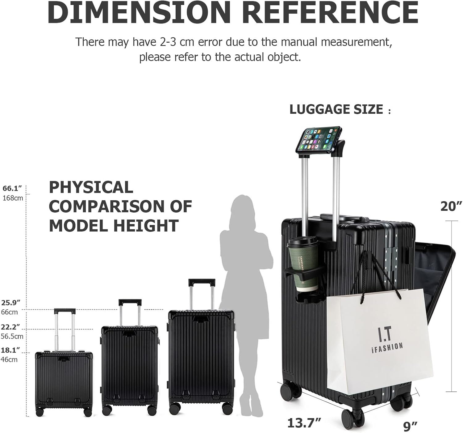 Multifunctional Holder Design: Especially designed water cup holder, phone holder located in top of luggage, and the handle hook, all is to provide a comfortable and convenient travel experience.