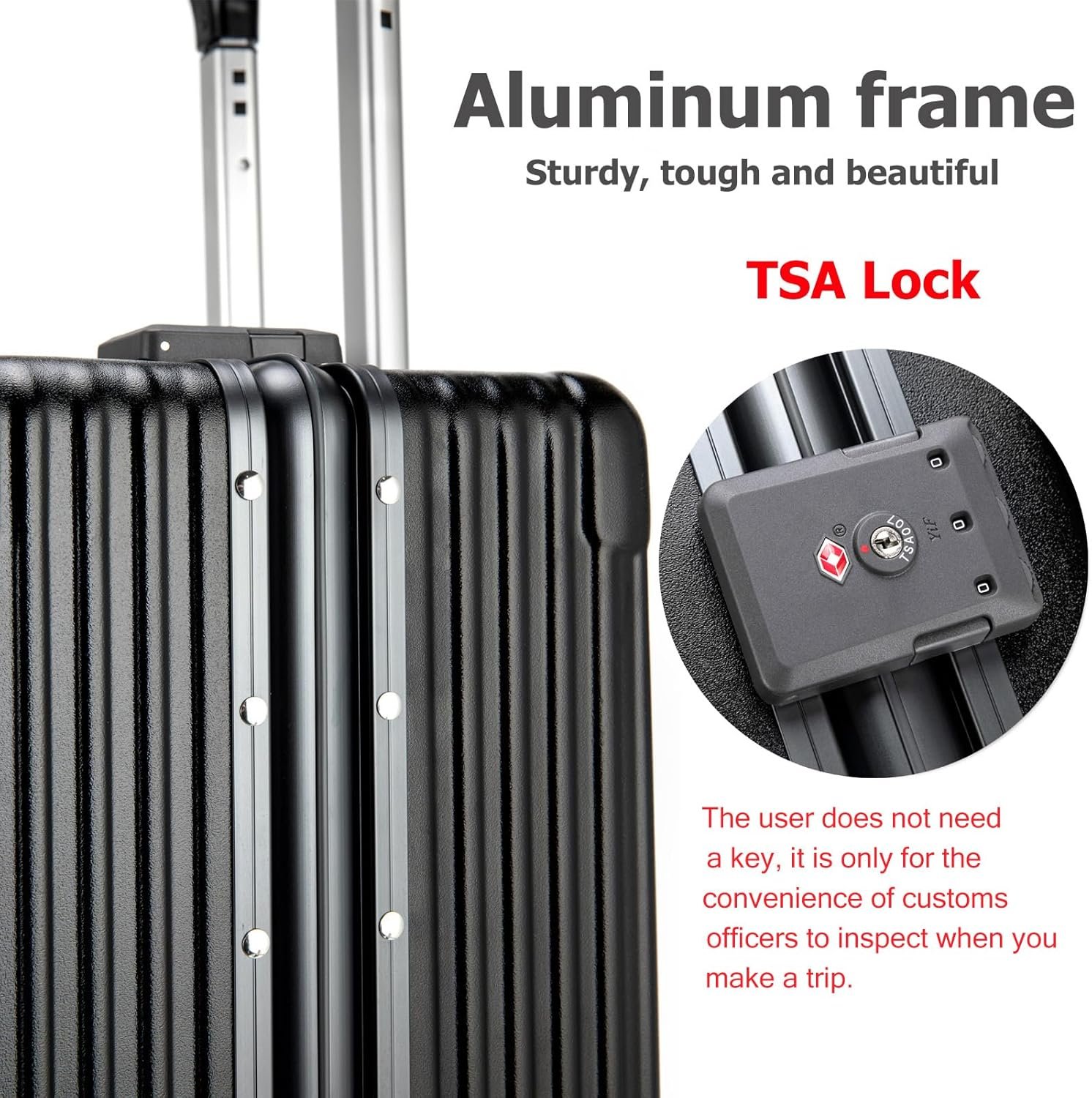 About TSA Lock: It is a globally universal lock designed by customs for security testing of transit luggage and transportation of customs supervised goods. The keyhole is designed for customs inspection personnel to quickly open the luggage with their master key, and buyers do not need a key but only need to set a password. Therefore, the luggage you purchase usually does not have a key.
