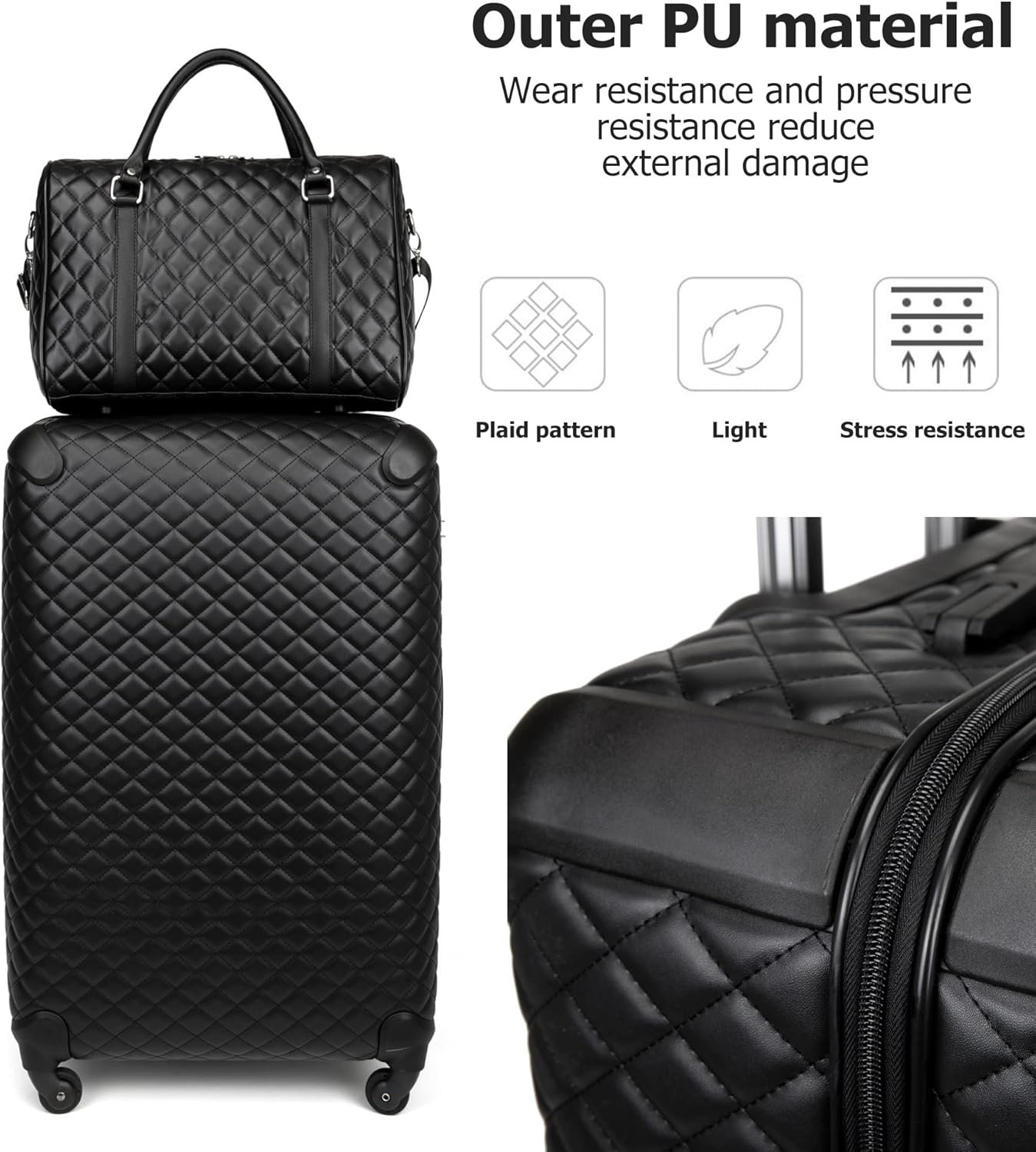 Comfortable and Durable PU Leather:The luggage bags for travel features a comfortable and durable PU leather exterior with a stylish grid pattern. It offers excellent resistance to compression and wear, effectively reducing damage from external forces and providing enhanced protection for your belongings.