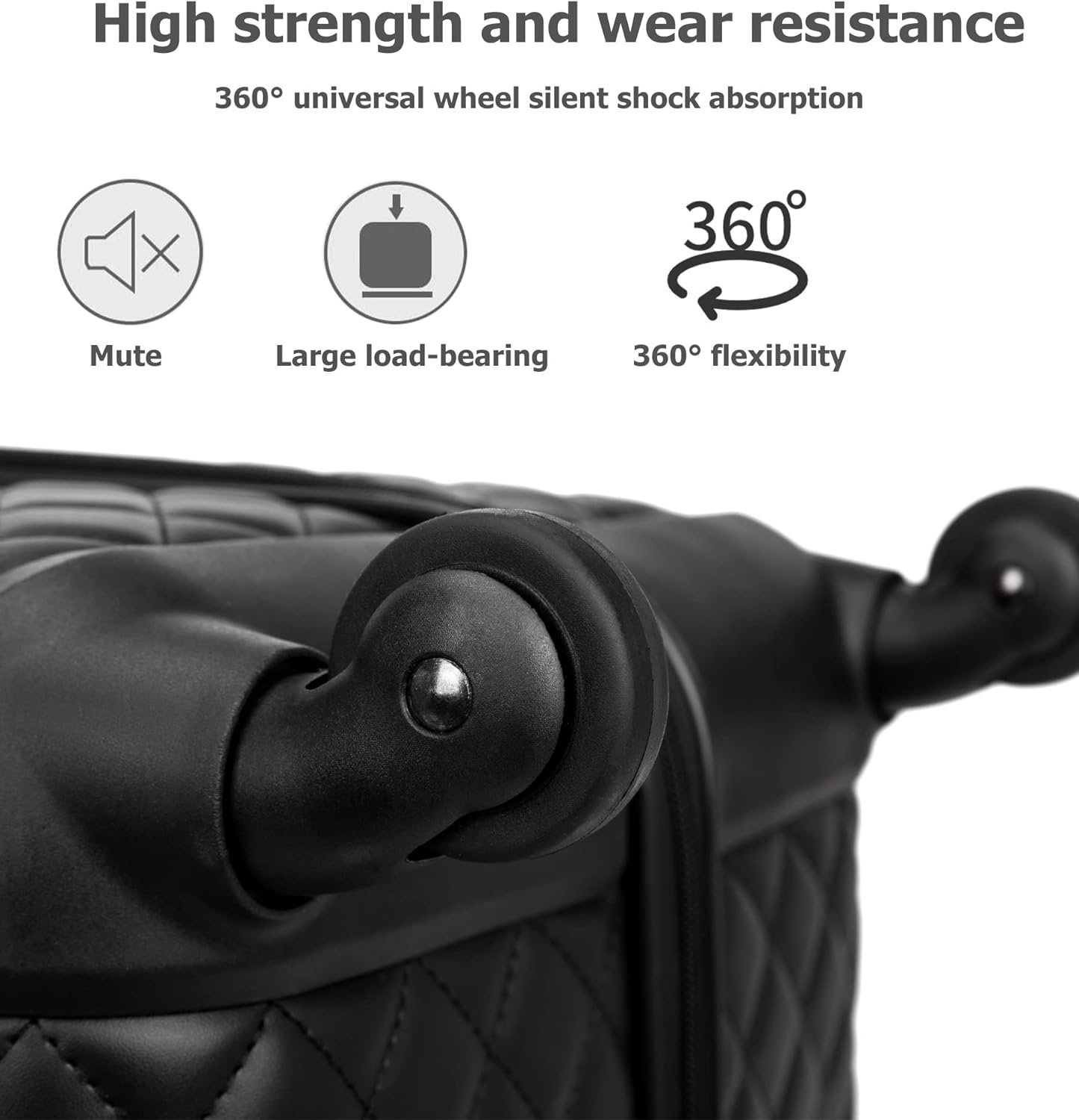 Smooth Maneuverability 360° Silent Wheels: Equipped with high-strength 360° silent wheels, the rolling luggage provides smooth and effortless maneuverability. These wheels are designed to reduce friction, absorb shocks, and offer stability, allowing you to navigate various surfaces with ease.