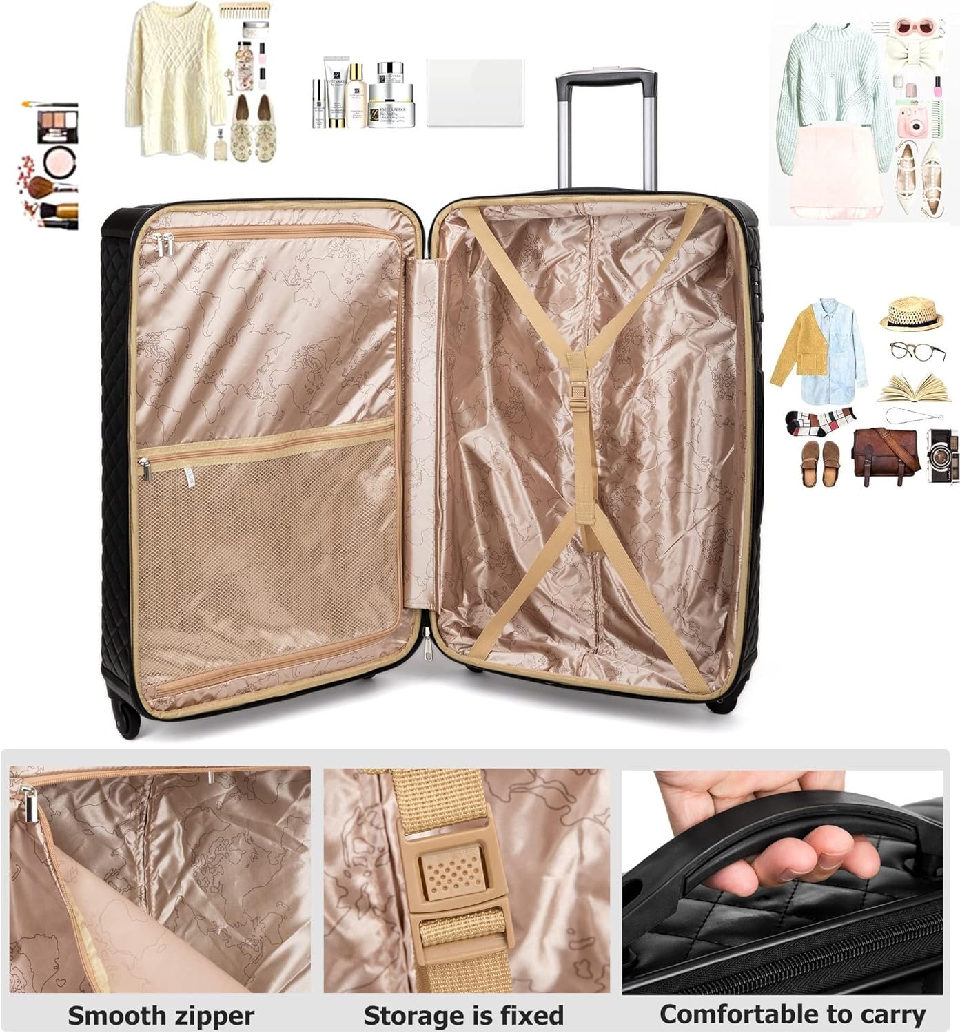 Three-in-One Secure Password Lock: Ensuring enhanced security during travel. The zipper heads securely attach to the password lock, preventing accidental zipper slips and ensuring the safety of your luggage.