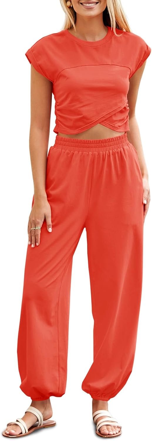Fisoew Women’s Two Piece Outfits Lounge Sets—Crop Tops and Jogger Pants