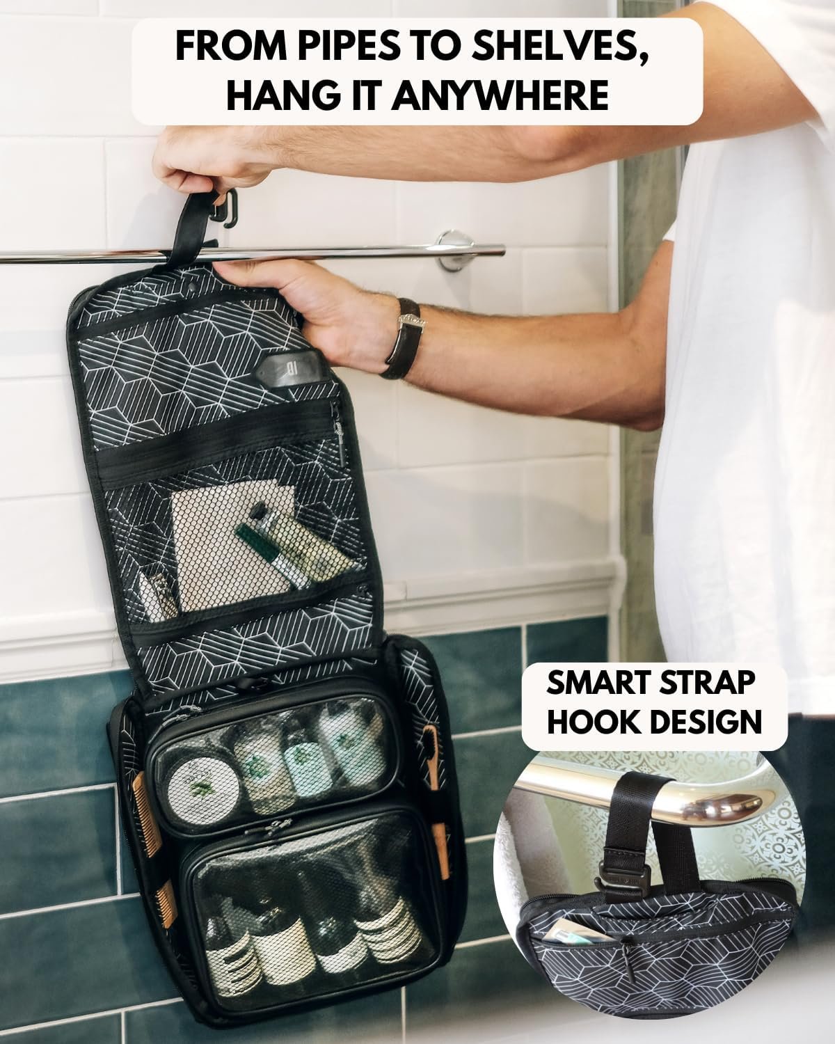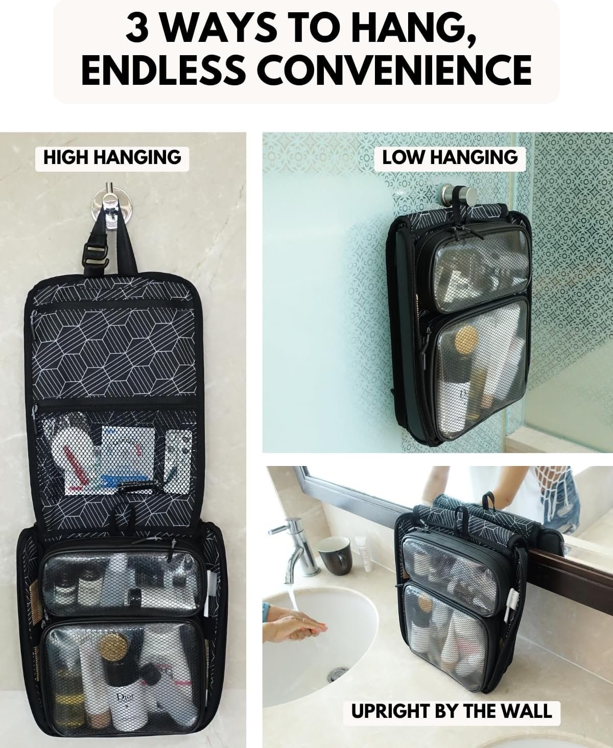 BUILD QUALITY – Crafted from durable waterproof fabric with a leak-proof zipper and water-repellent lining, this toiletry bag is designed to minimise humidity and prevent moisture. Each zipper pull features additional rubber anti-slip grippers for enhanced comfort and efficiency when opening or closing our dopp kit toiletry pouch.