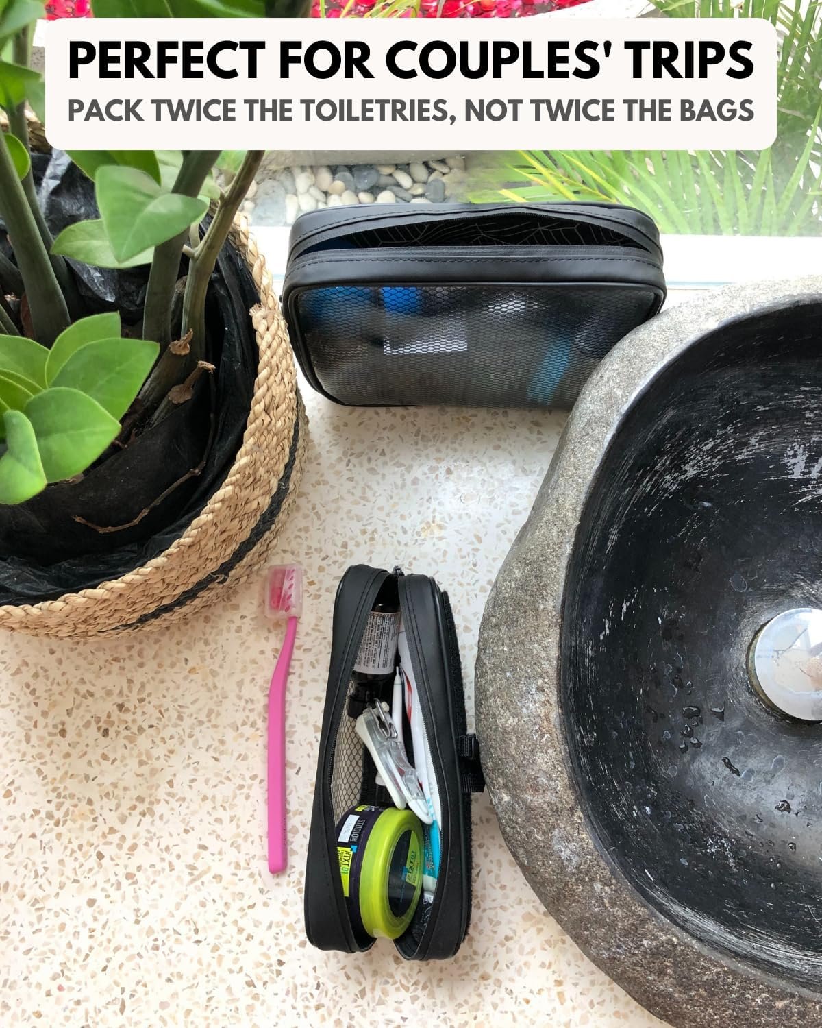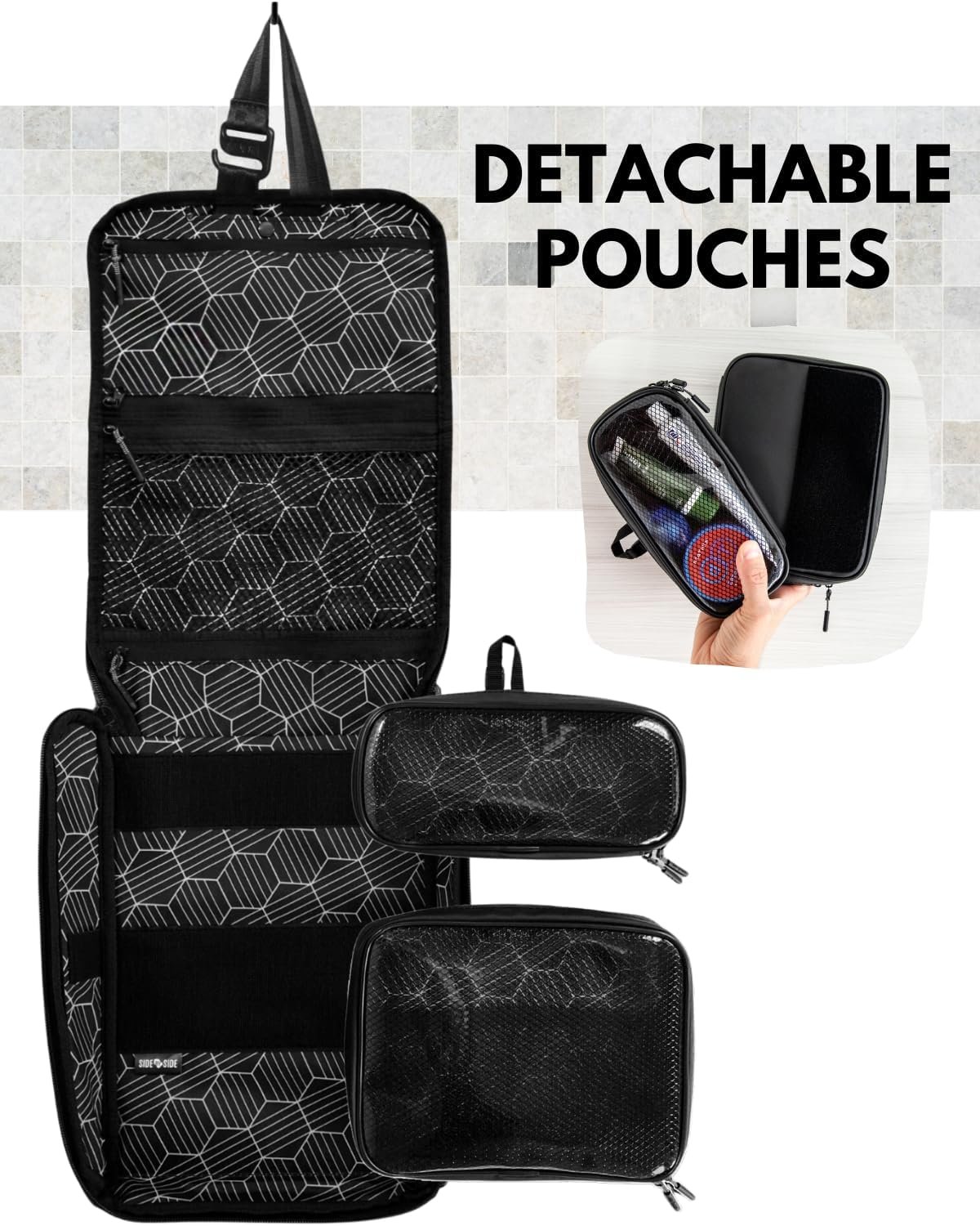 TSA APPROVED – Our design features a durable construction with a transparent front made of PVC and mesh reinforcement. This ensures quick and hassle-free passage through airport checkpoints, while also complying with airline regulations for carrying toiletries for men and women. You can breeze through security checks with ease and have peace of mind knowing that your essentials are in compliance with travel requirements.