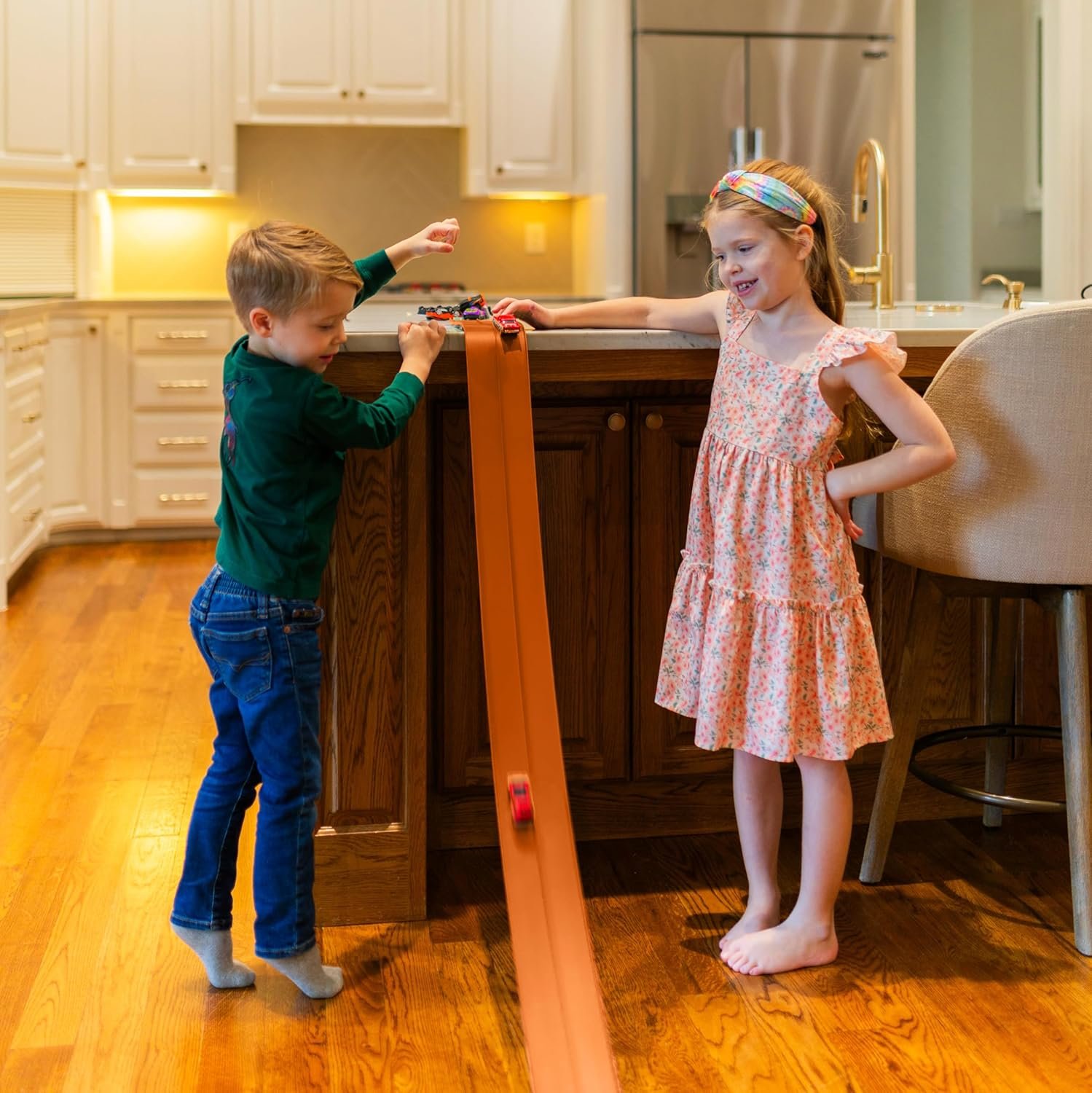 FlexTrack 5000 Orange Track for Toy Cars Flexible Race Track for Kids with Suction Cups Compatible with Hot Wheels Matchbox and Diecast 1/64th Car 15 Feet Long Rolls Up Portable Racetrack