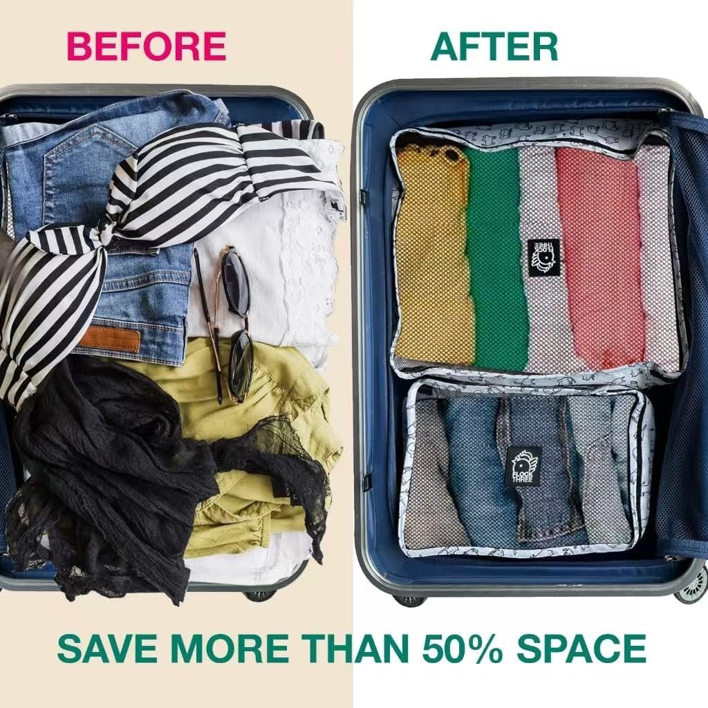 ๐งณ 6-Piece Compression Packing Cubes Set: This set includes 6 packing cubes in 4 different sizes (Extra Large, Large, Medium, Small) to keep your luggage organized and save space. Perfect for travelers, the 6 mesh compression bags allow you to pack more efficiently and maximize your suitcase space.