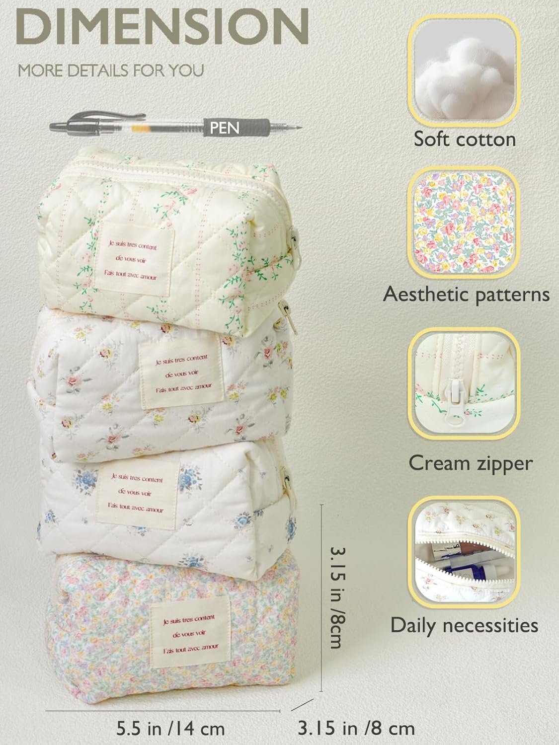 FASHION AESTHETIC ACCESSORIES: Unique aesthetics floral quilted design, whether it’s used as a makeup organizer, travel toiletry &skincare bag, or pencil case pouch, it can adapt to different needs, making it a fashion coquette accessories for anyone and any occasion. It’s part of the latest trendy stuff, making it the ideal makeup bag for purse for anyone who loves aesthetic stuff and cute stuff