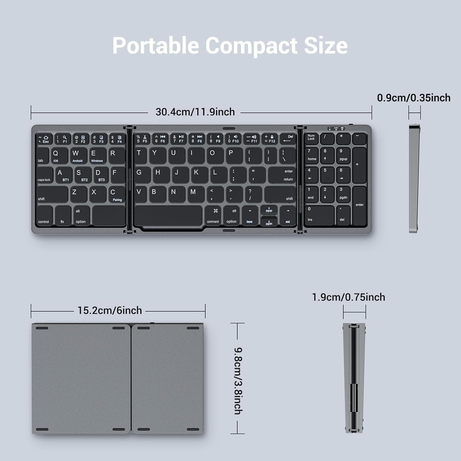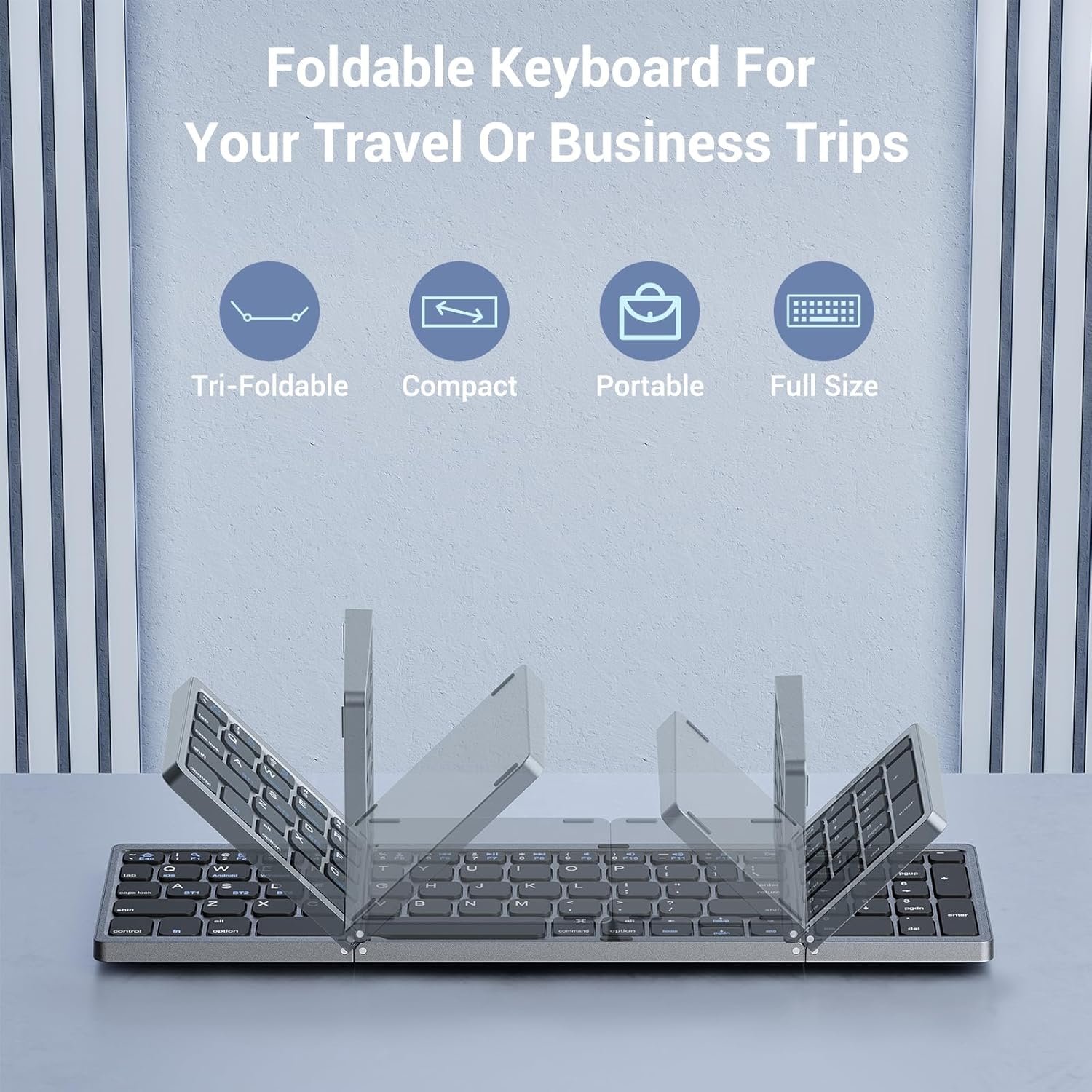 Ultra Slim & Quiet Typing: The ultra-thin trifold Bluetooth keyboard is space-saving and suitable for limited desktop areas. Despite its small size, it has an ergonomic design for natural finger curvature and a logical key layout. And It offers quiet keystrokes and a comfortable typing experience.