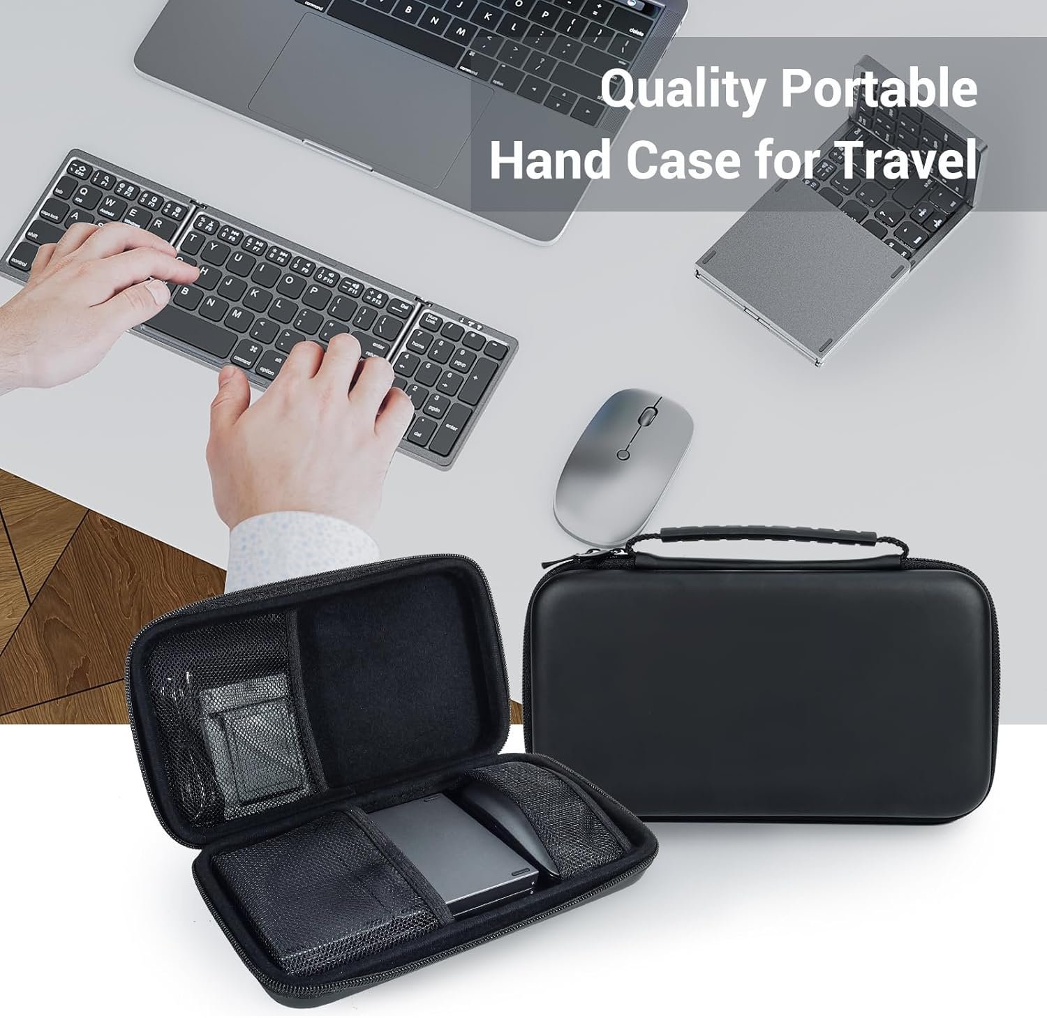 Foldable Keyboard and Mouse for Laptop, Travel Bluetooth Folding Keyboard Mouse with Portable Case, Rechargeable Keyboard for Business, 2.4G Wireless & Bluetooth, for iPad Tablets Laptop iOS Android