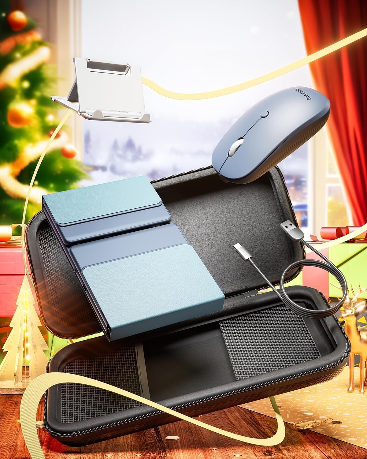 【Portable Case & Big Convenience】 Samsers Foldable Keyboard and Mouse with Case, weighs only 21 ounces. Sturdy and stylish case organizes all your essentials neatly, including folding keyboard and mouse, phone holder, charging cable! Maximum convenience for you with minimum weight and size! Not just a keyboard, but a travel solution!
