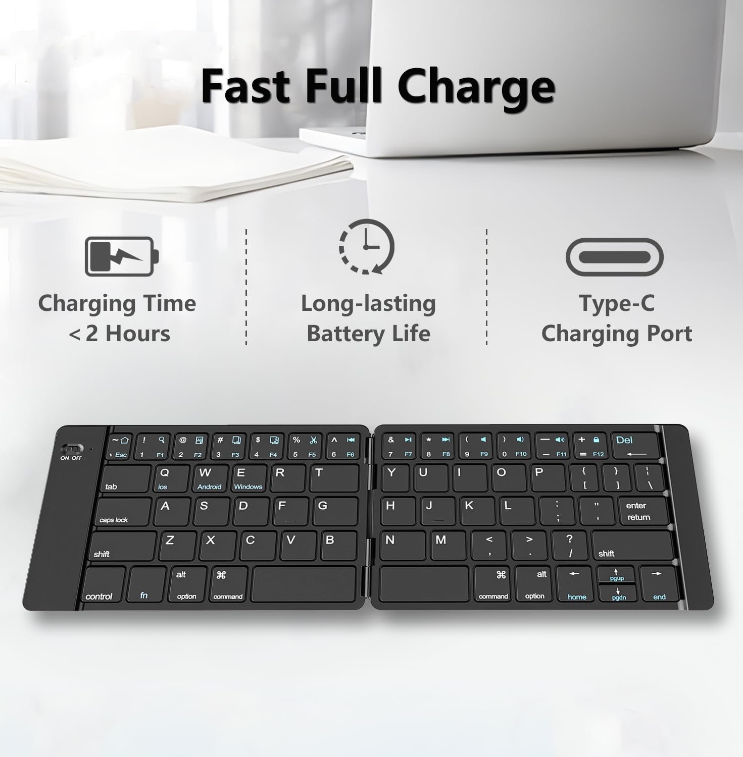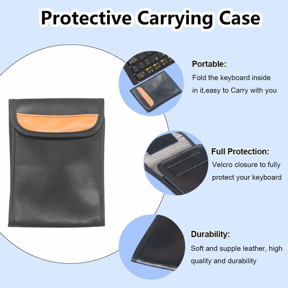 【Bluetooth Foldable Keyboard】 Portable folding keyboard with storage bag allows you to work anywhere, anytime! Standard-size design provides accurate, fast typing, just like the desktop keyboard you are used to. Quiet keys allow you to focus on your work. Perfect for travel and business trips.