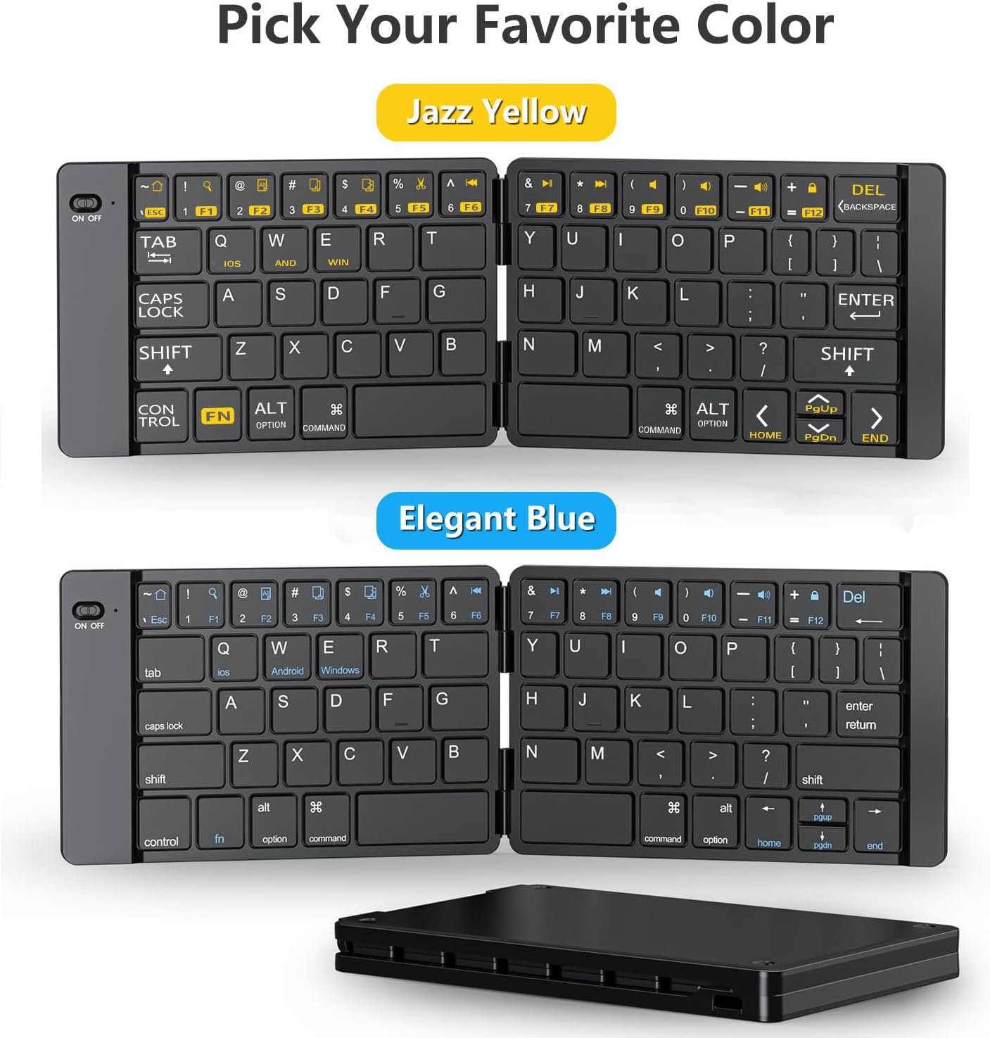 Foldable Keyboard – Portable Travel Keyboard with Storage Bag, Rechargeable Full Size Ultra Slim Mini Folding Wireless Keyboard for iOS Android Windows Smartphone Tablet and Laptop (Jazz Yellow)