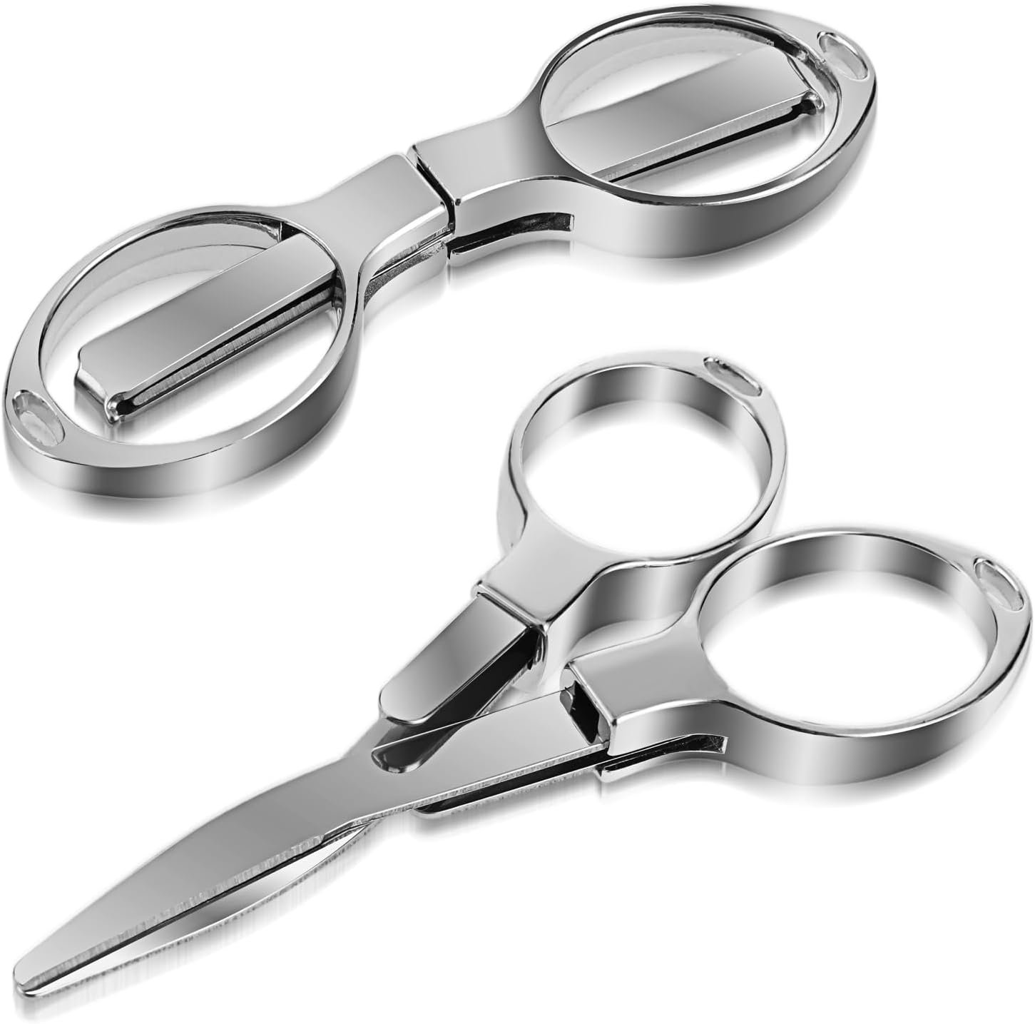 Folding Scissors TSA Approved 2 Pcs Travel Scissors TSA Approved Travel Scissors Stainless Steel Small Scissors Silver Mini Badge Scissors For Home Office Travel Safe Portable Pocket Scissors