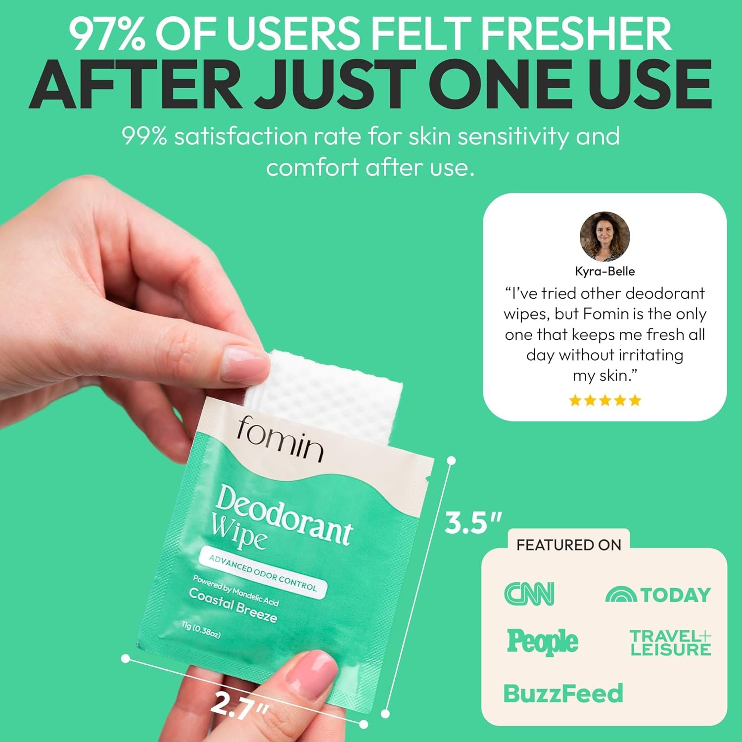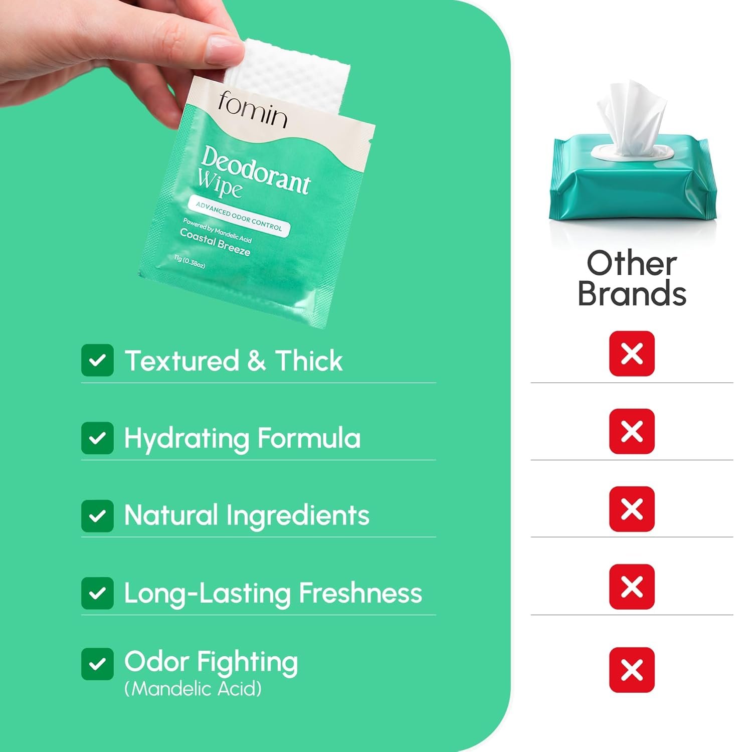 SAY GOODBYE TO SWEAT & ODOR: Fomin mini deodorant wipes for women and men are your go-to armpit wipes and body wipes when it comes to removing traces of unwanted sweat. Stay confidently fresh anytime, no matter where life takes you!