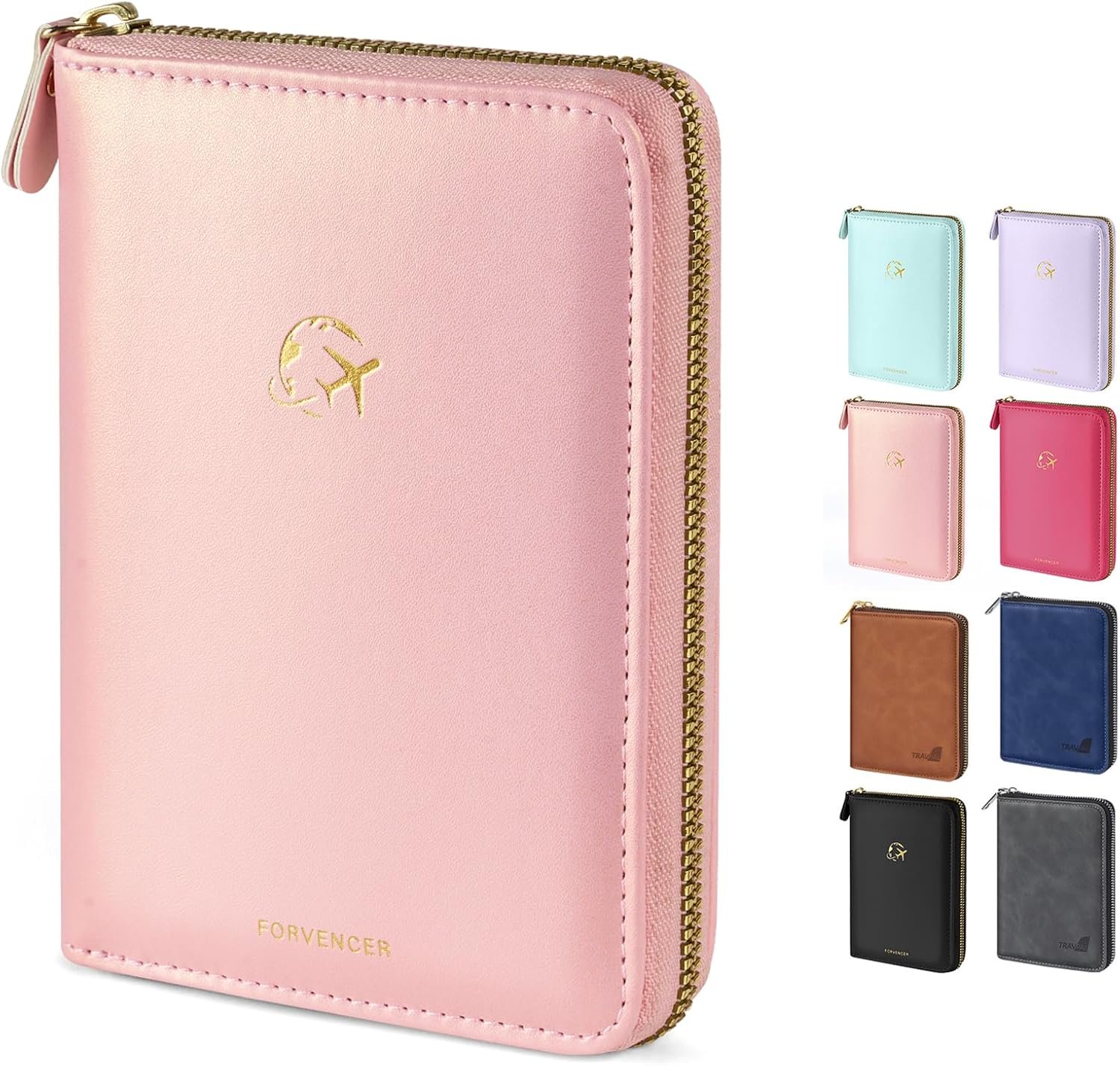 Forvencer Passport Holder Cover with Safe Zipper Closure, Premium Passport Wallet for Travel, Cute RFID Blocking Card Case, Waterproof Travel Accessories for Women, Rose Gold