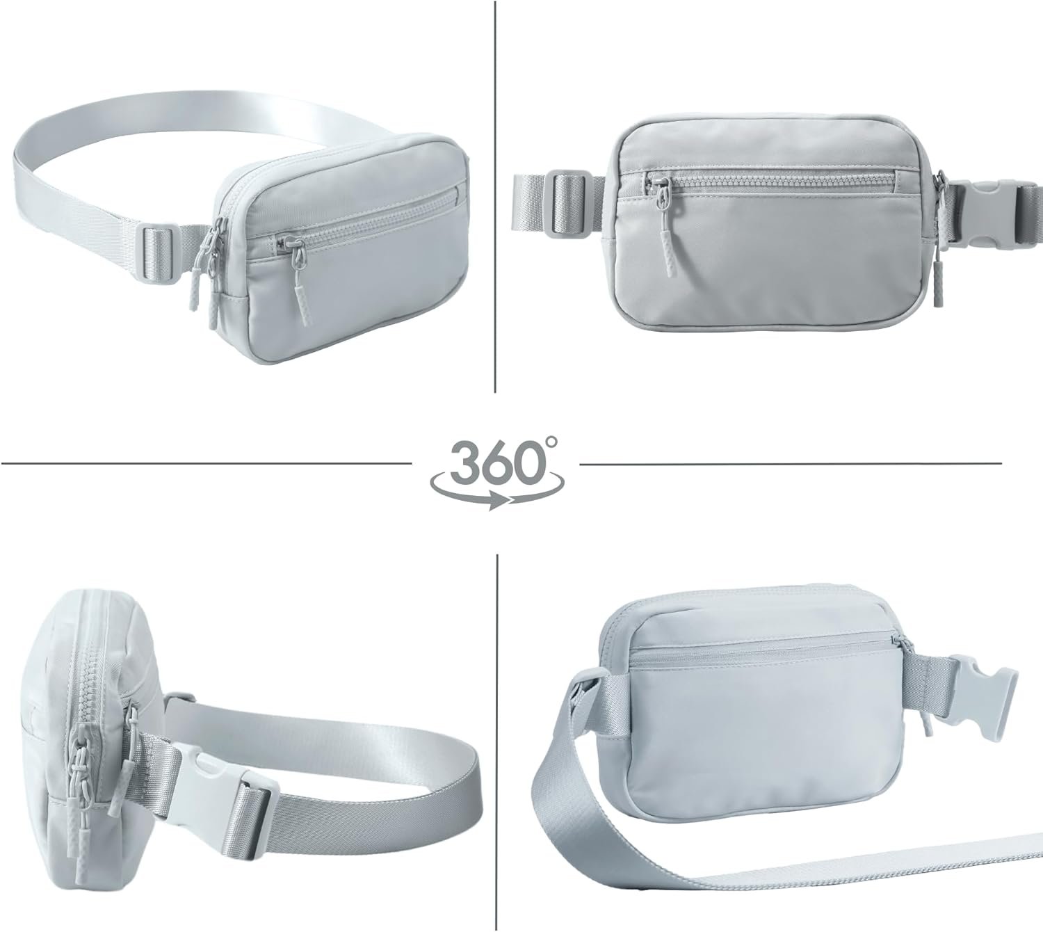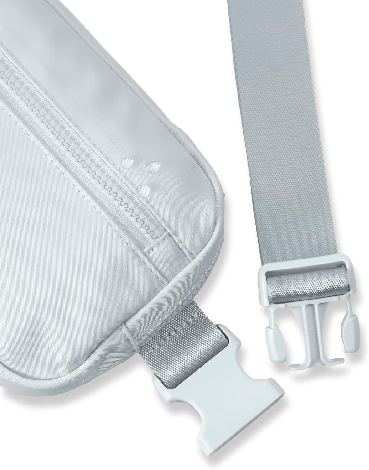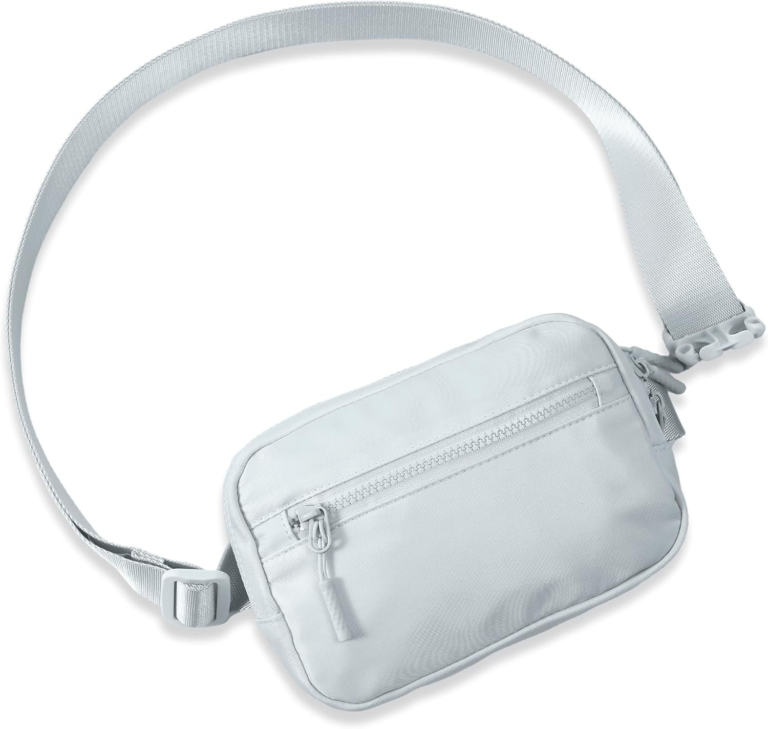 FORZAROCKET Essential Belt Bag w/Long Strap 70″ & Front Zip Pocket – Crossbody Bag w/Extended Strap – Fanny Pack for Women Men – Two-Way Zipper Sling Bag – Travel & Plus Size Friendly, Light Grey