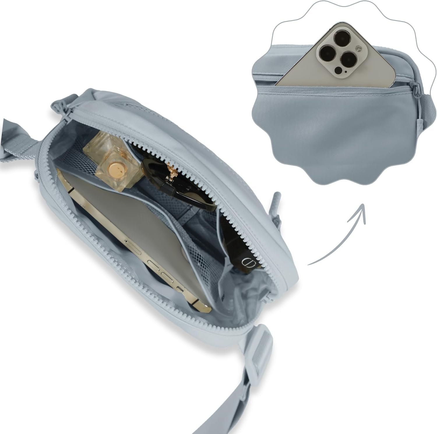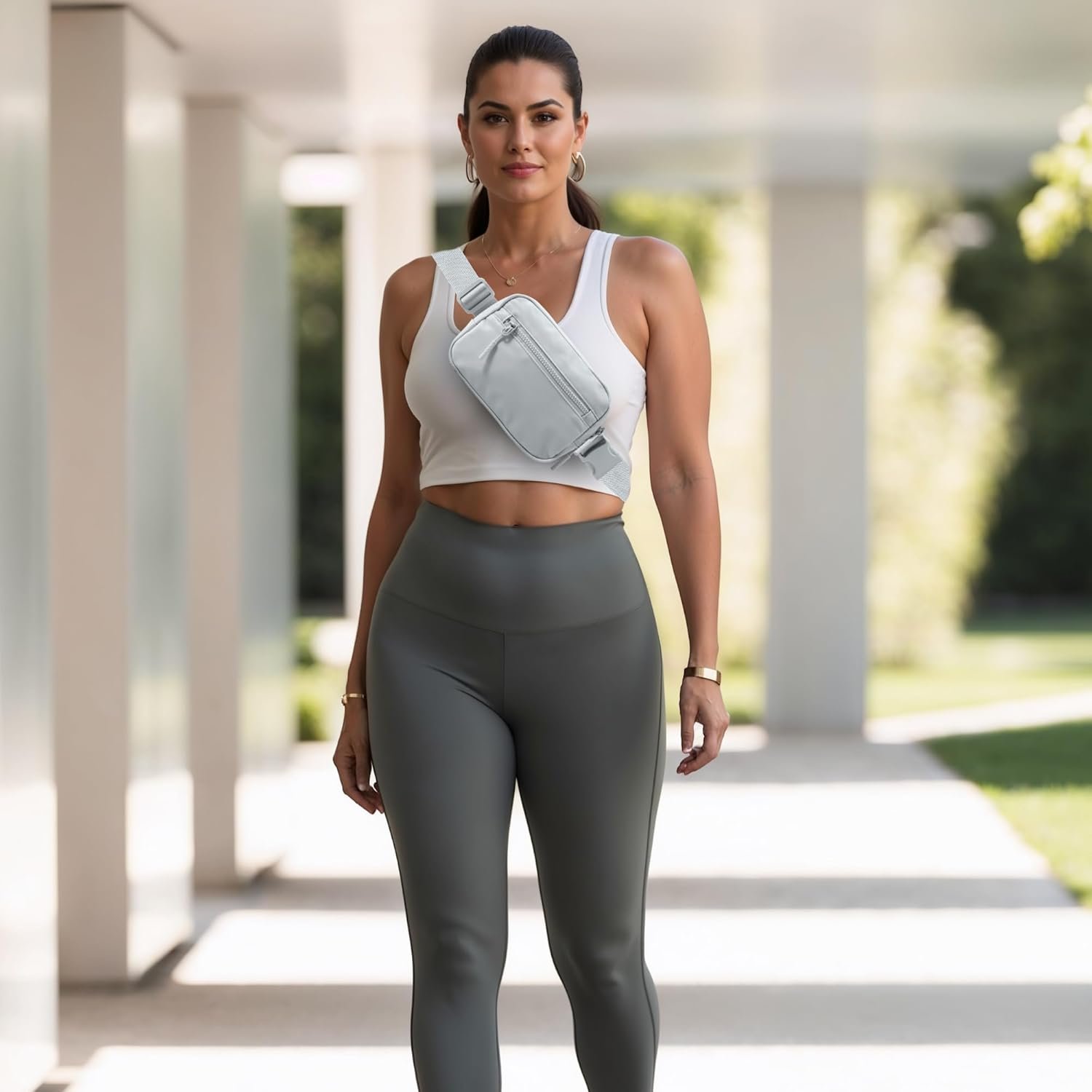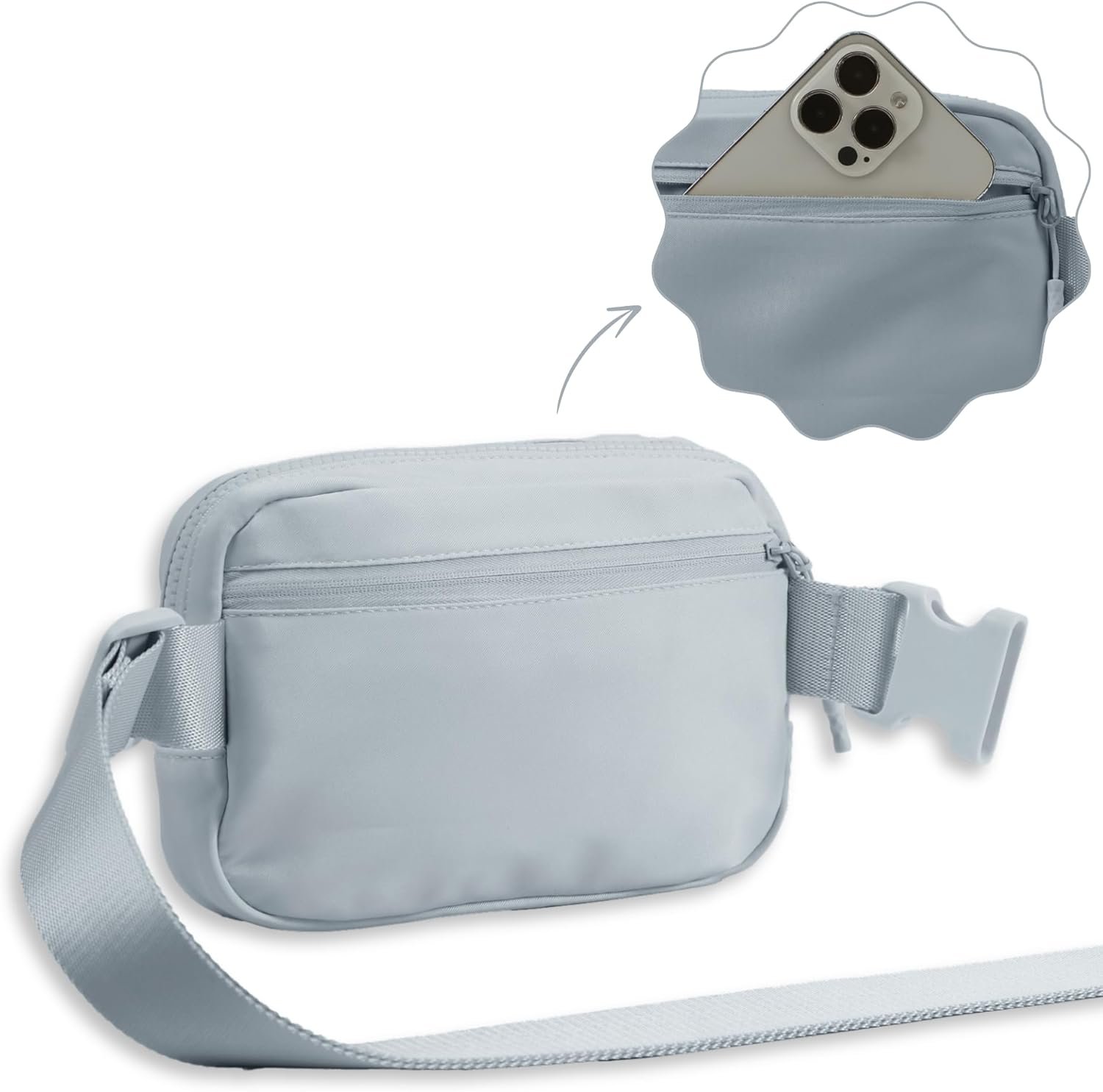 FORZAROCKET Essential Belt Bag w/Long Strap 70″ & Front Zip Pocket – Crossbody Bag w/Extended Strap – Fanny Pack for Women Men – Two-Way Zipper Sling Bag – Travel & Plus Size Friendly, Light Grey