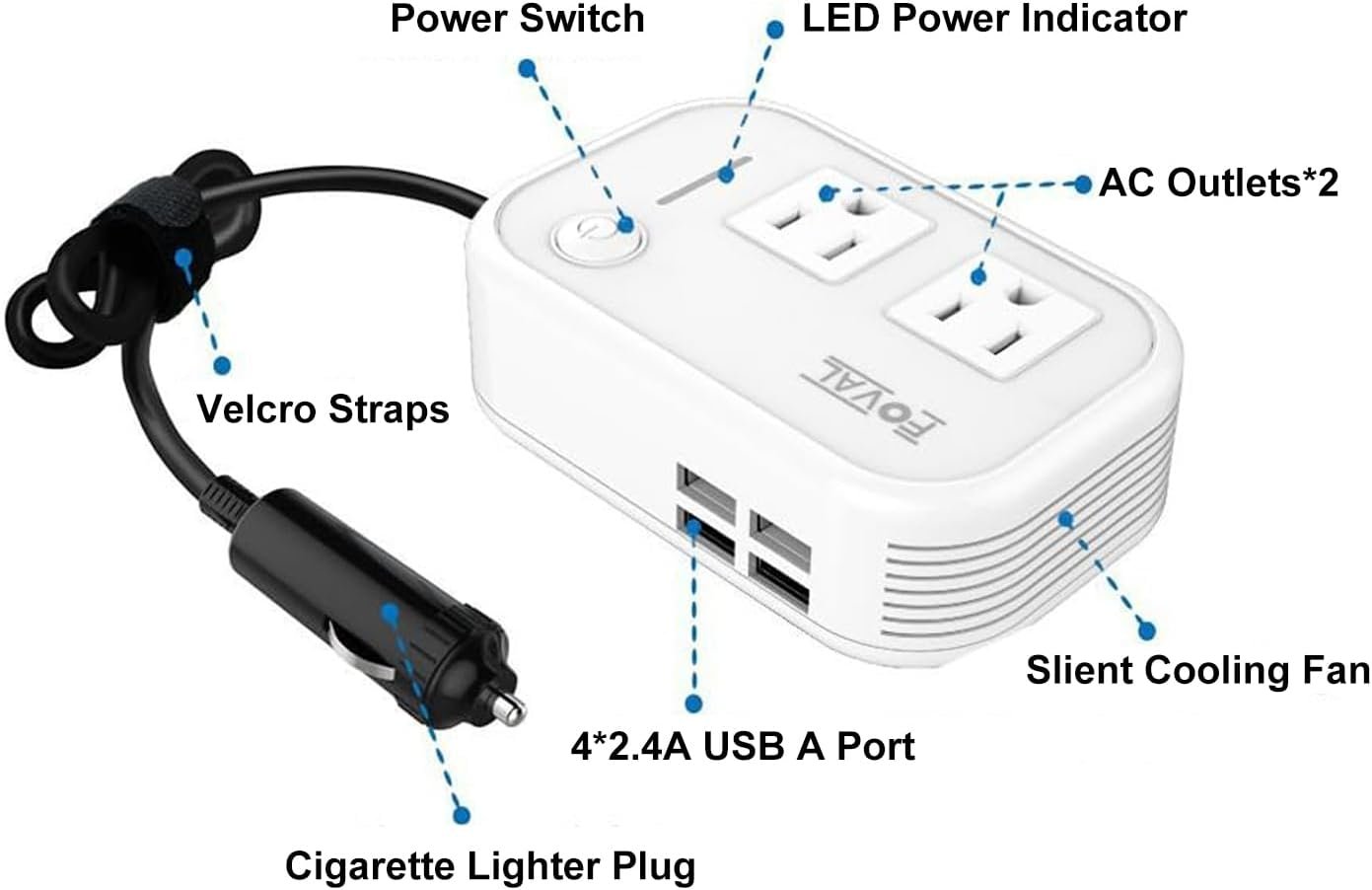 Be the first to review “FOVAL 200W Car Power Inverter, DC 12V to 110V AC Car Outlet Adapter Plug Adapter Converter with 4 USB Ports Laptop Charger for Vehicles (White)”