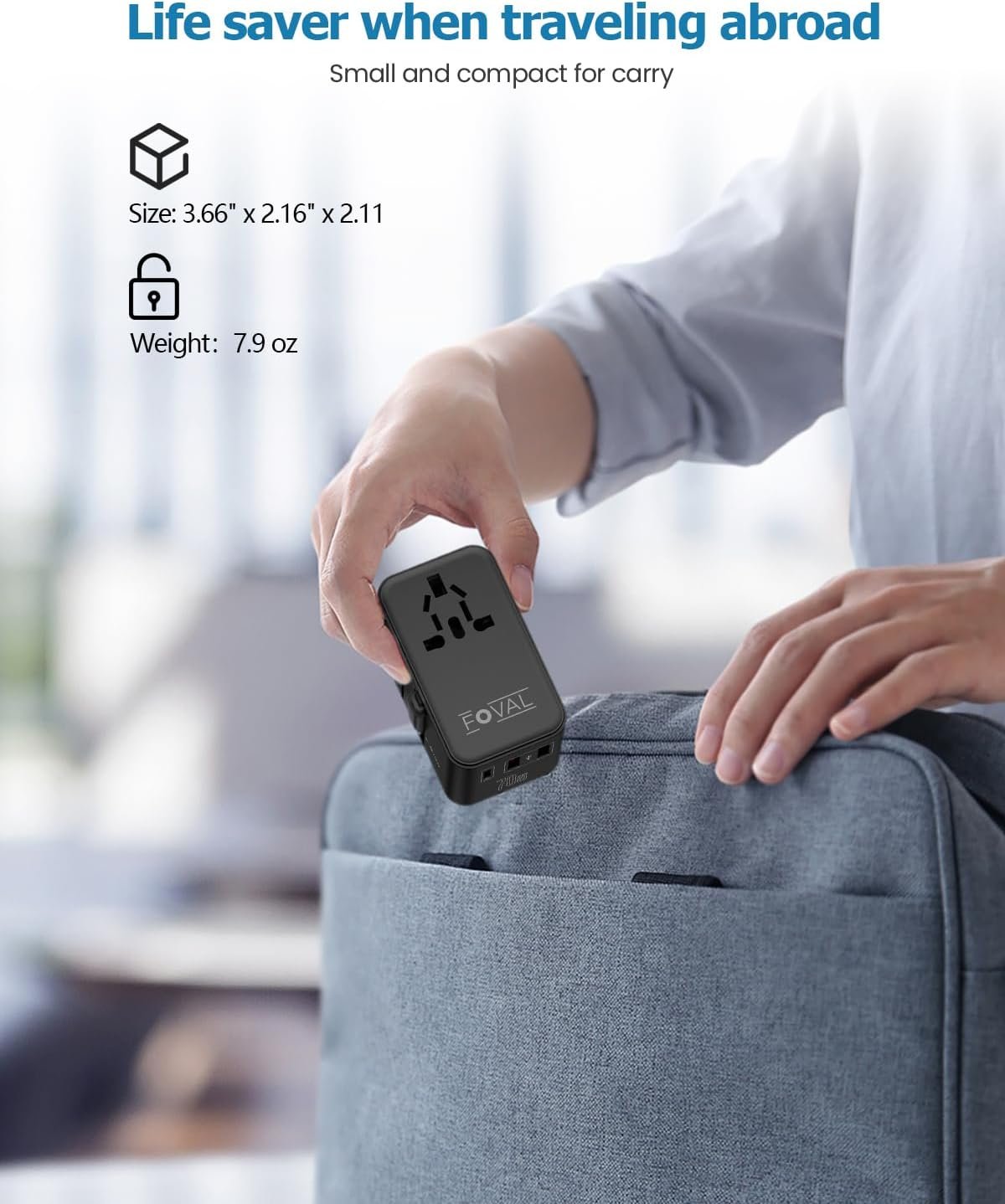 Compact Travel Essential for Travelers: Small size (3.66″ x 2.16″ x 2.11″) and lightweight (7.6 oz). No extra heavy cords and plugs, making it easy to use and carry for travelers, overseas business, work and students. Adapters work everywhere, you can also use it at home/office to charge devices when not traveling.