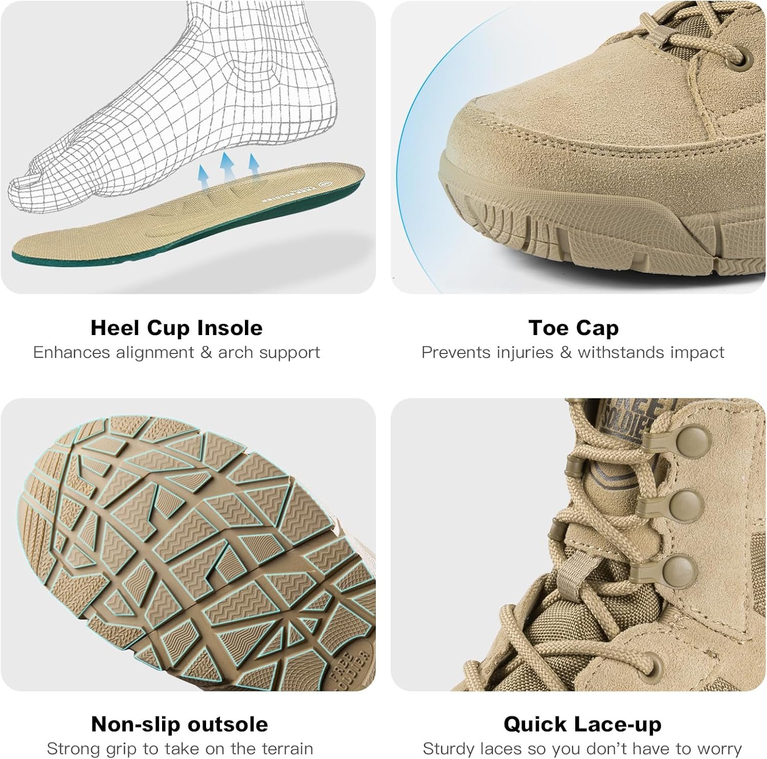 FREE SOLDIER Hiking Work Boots Men’s Tactical Boots 6 Inches Waterproof Military Boots Outdoors Desert Boots