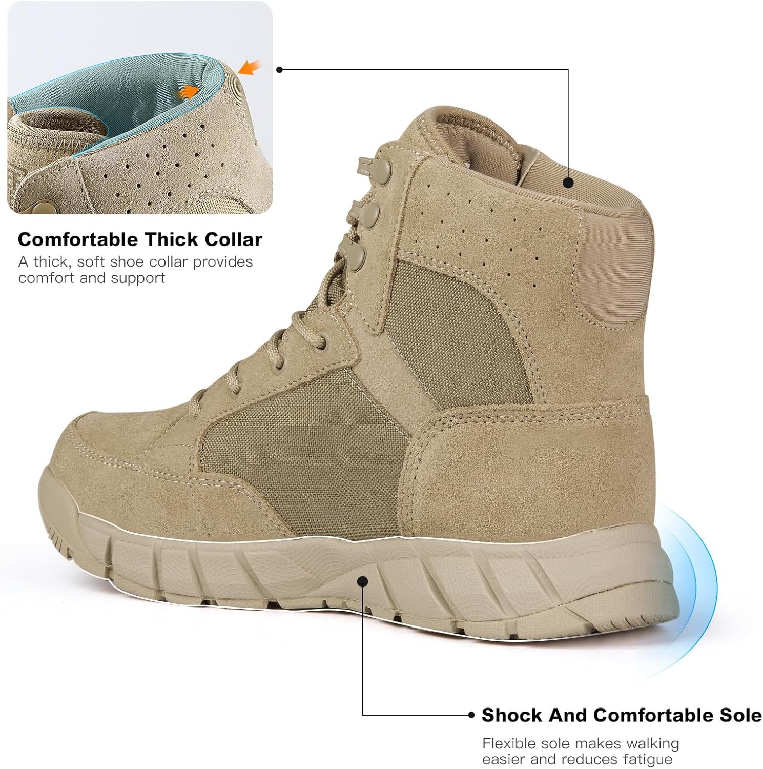 PERFECT INDOOR & OUTDOOR BOOTS FOR MEN – Designed for Spring Summer Autumn and Winter, offers all day comfort for outdoor activities and daily life. Ultralight style of hiking boots men, also can be wore as summer work boots, hunting boots, army boots, interceptor boots, security boots, airsoft boots, duty boots, mountaineering boots, etc