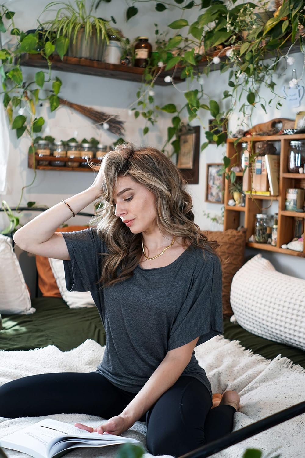 Upgrade your wardrobe with our Batwing Sleeve Tops for Women, blending comfort and fashion effortlessly. These batwing tops are designed to exude a relaxed yet chic appeal, making them perfect for various occasions. Create endless outfit possibilities with our trendy short sleeve tunic tops for women, a must-have addition for women who love pairing their tops for leggings. Elevate your wardrobe with our trendy short sleeve tunic tops to wear with leggings, a must-have addition for women who love working out.