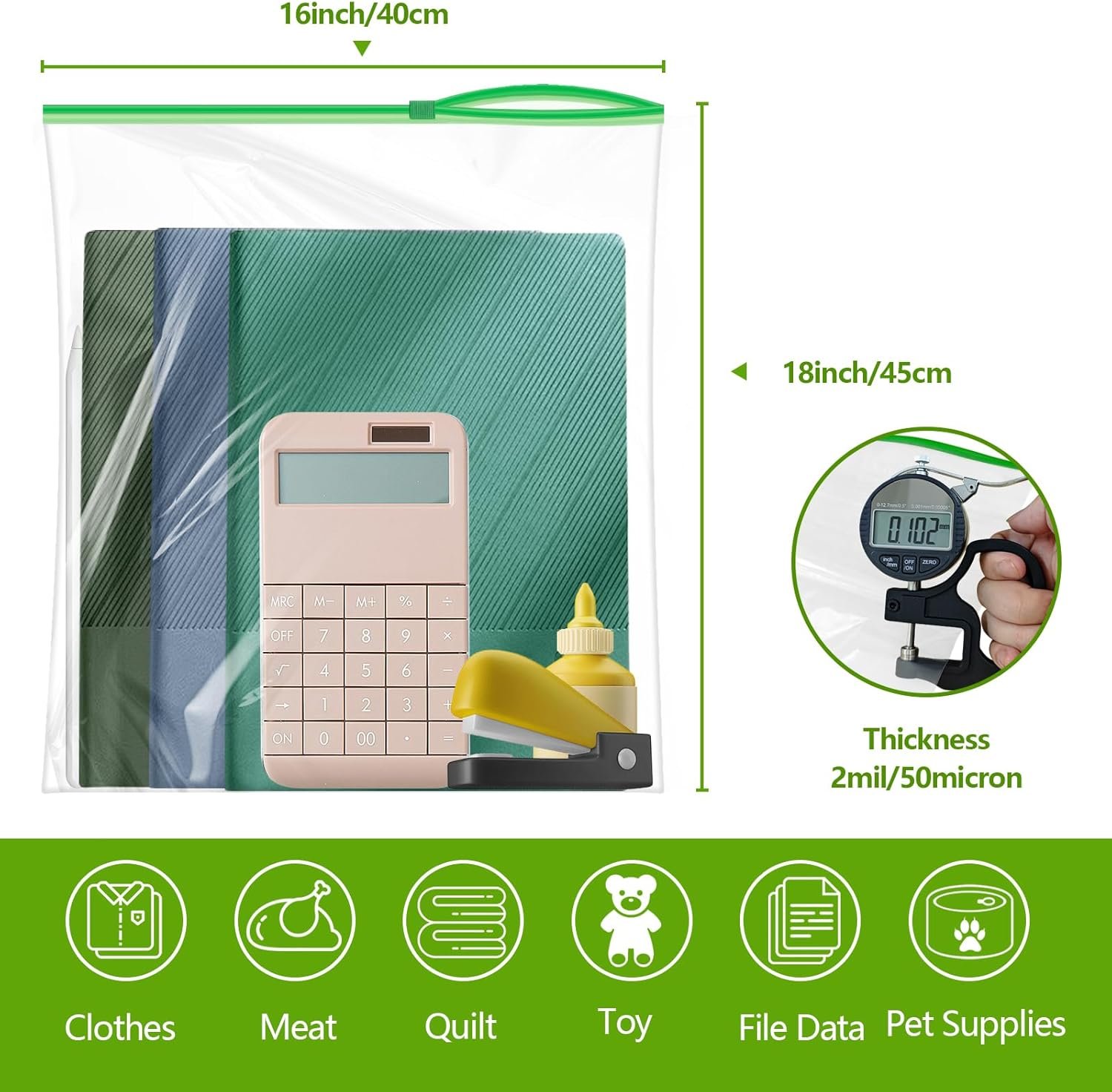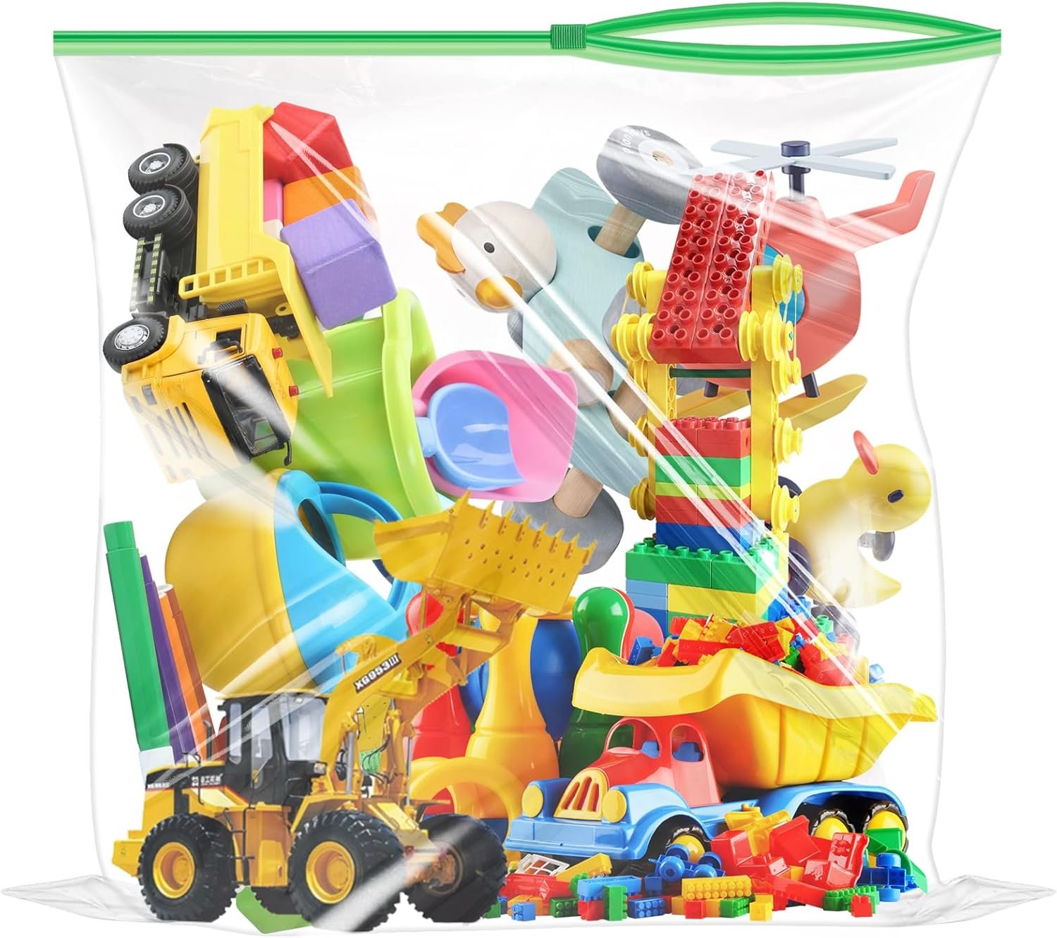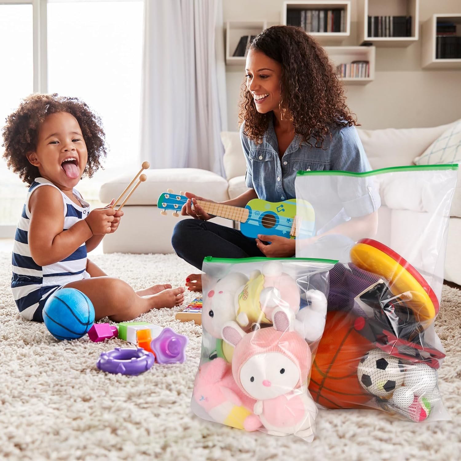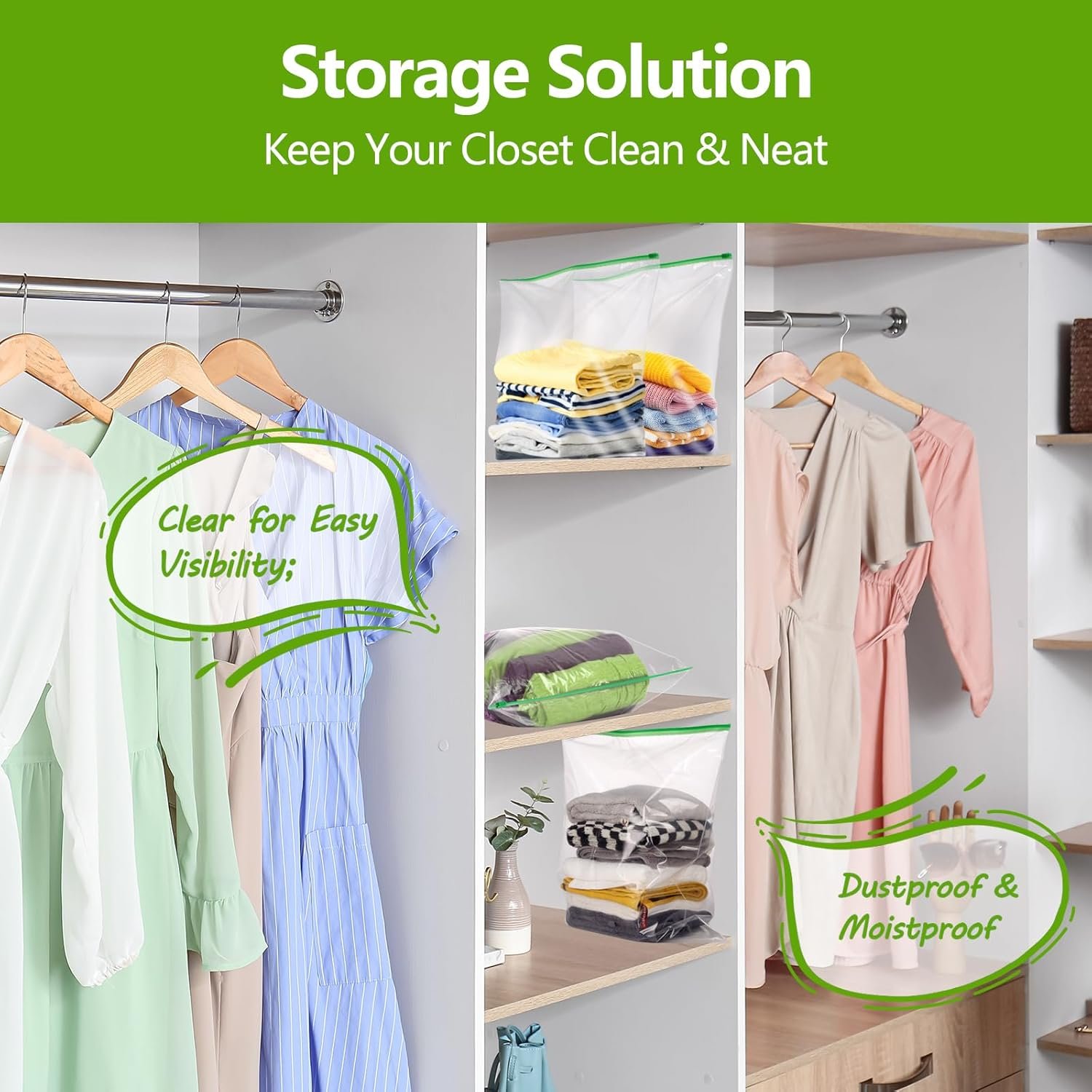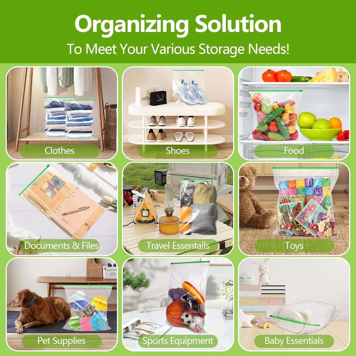 Resealable Plastic Bags with Slider Closure for Travel: Use large plastic bags to store clothes, linens, camping & sporting equipment, beach and swimming pool essentials, sewing supplies, bedding, books, seasonal items, costumes, holiday décor