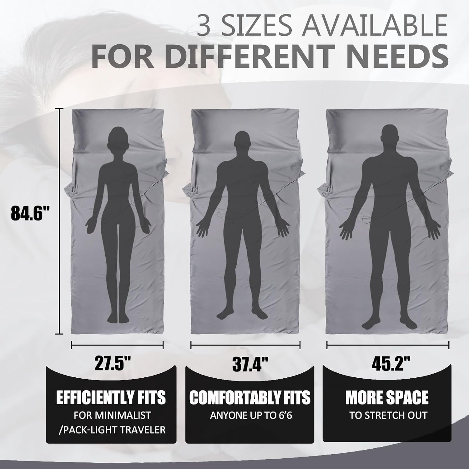 Lighter and Compact: Frelaxy Sleeping Bag Liner/Travel Sheet is made of upgraded fabric, offering comfort like cotton but with 50% less weight (only 196g, 257g, and 310g.) and a significantly smaller package size, Fits easily into your backpack or luggage without adding extra bulk.