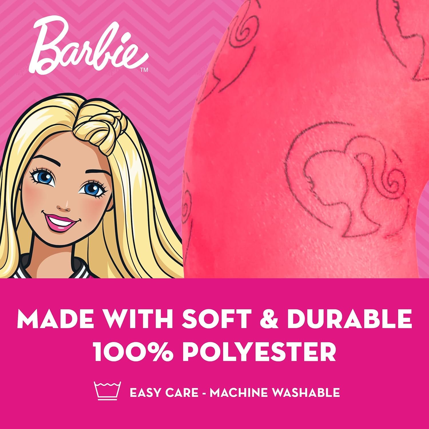BARBIE NECK PILLOW: This cute and stylish pink Barbie travel pillow is perfect for long car rides and airplane trips, and features an adorable design featuring Barbie imagery; this airline pillow can be used for sleeping at home, office breaks, and for providing neck support while watching TV or reading